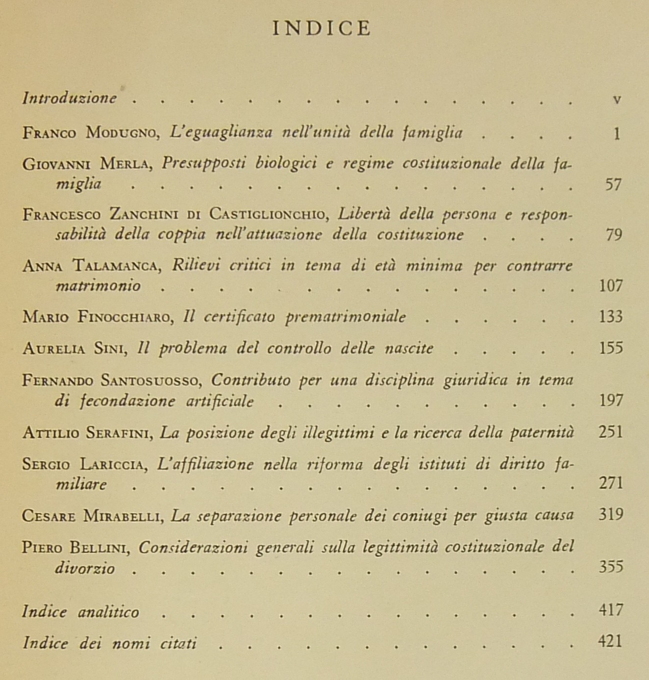 Scritti di: Bellini, Finocchiaro, Lariccia, Merla, Mirabelli C., Modugno, Santosuosso, Serafini, Sini, Talamanca Anna, Zanchini di Castiglionchio