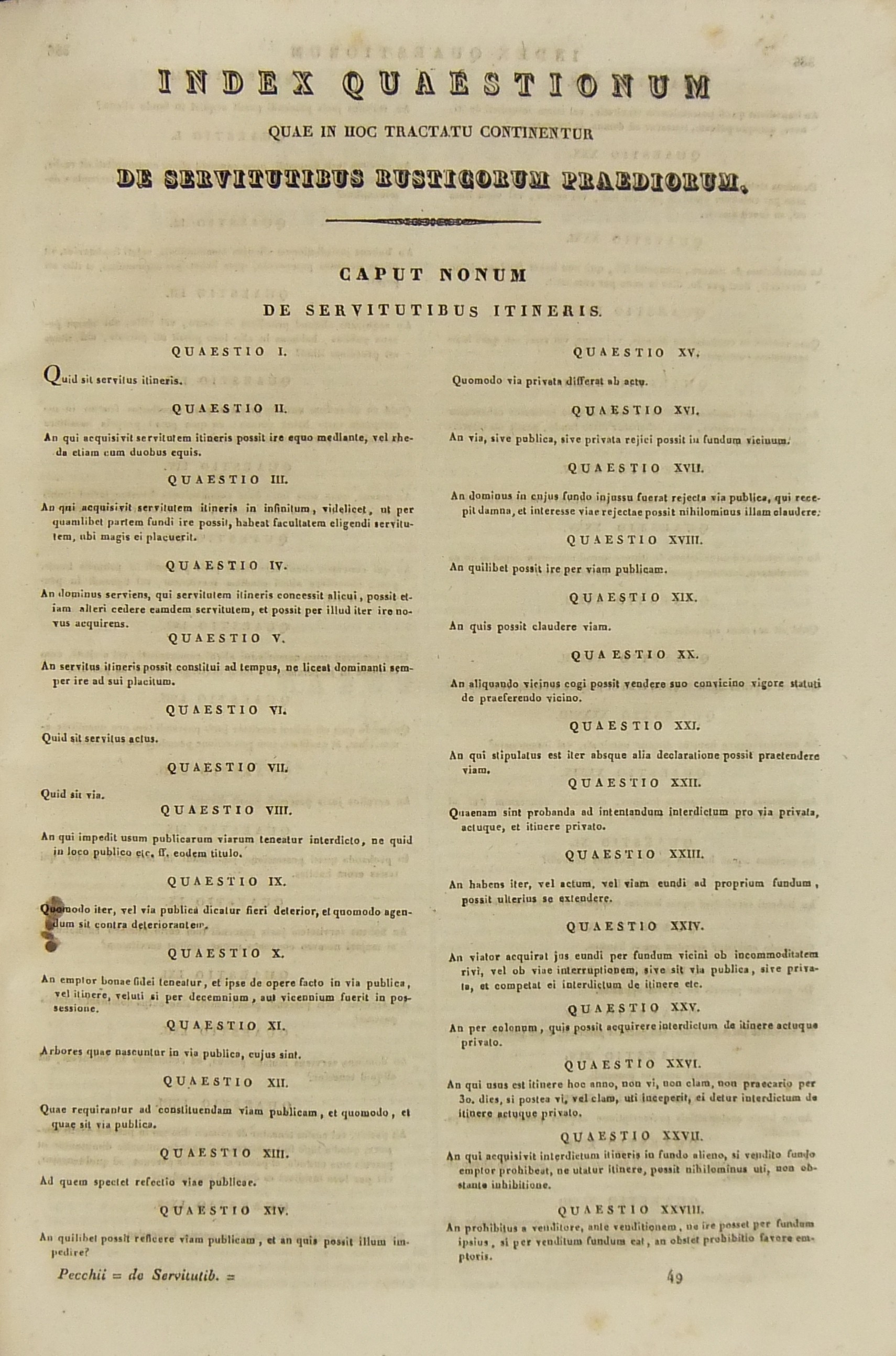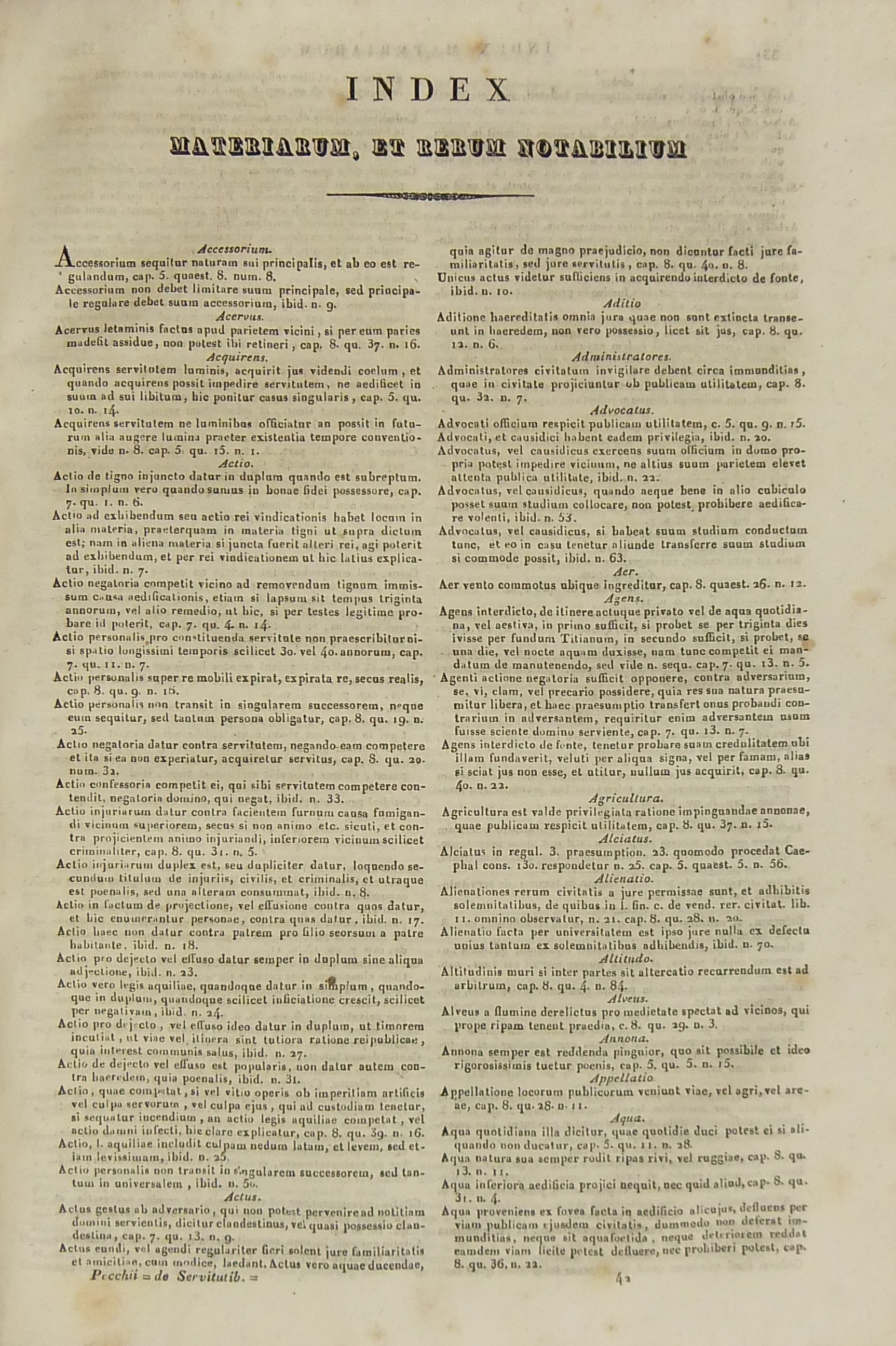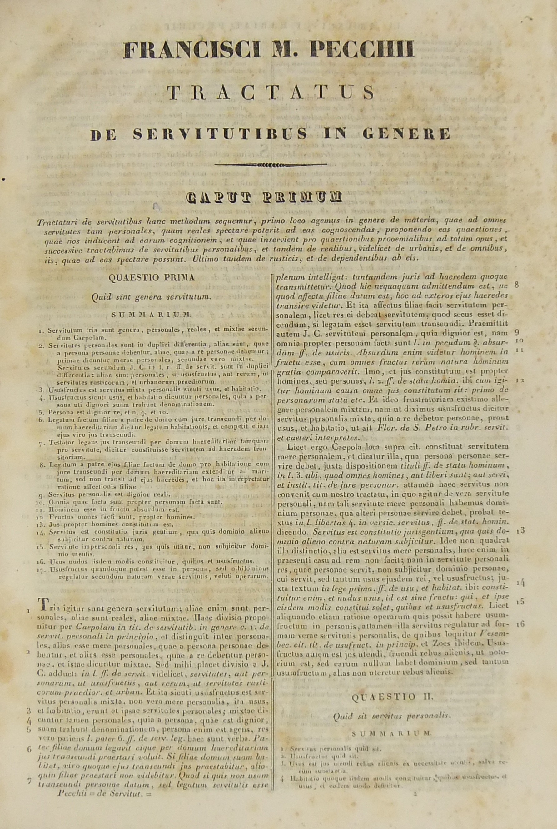 Francisci Mariae Pecchii.. Tractatus de servitutibus in genere. Opus valde utile et necessarium omnibus.. Cum indice quaestionum et materiarum copiosissimo Tomus secundus - Tractatus de servitutibus urbanis.. Cum indice quaestionum et materiarum copiosissimo