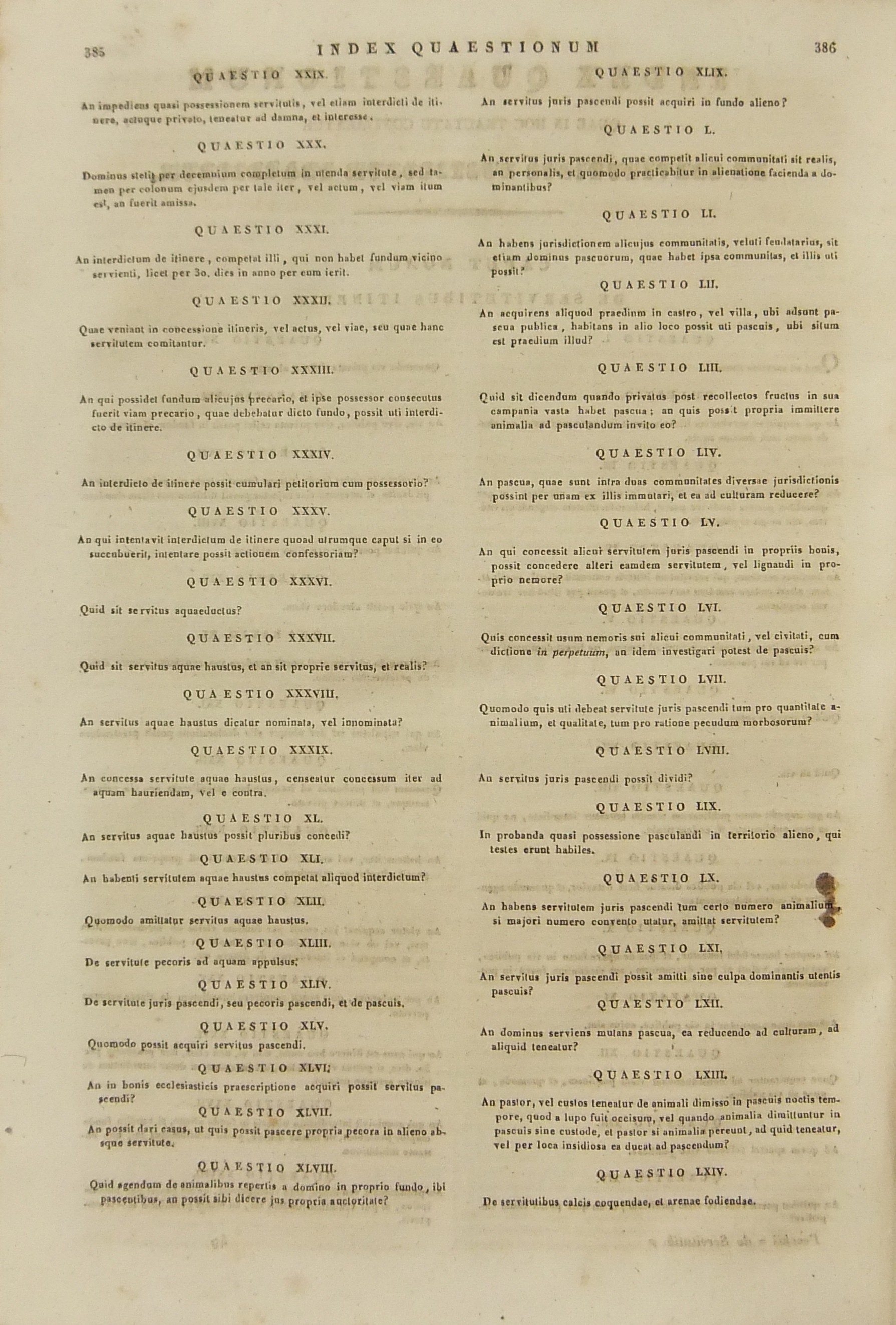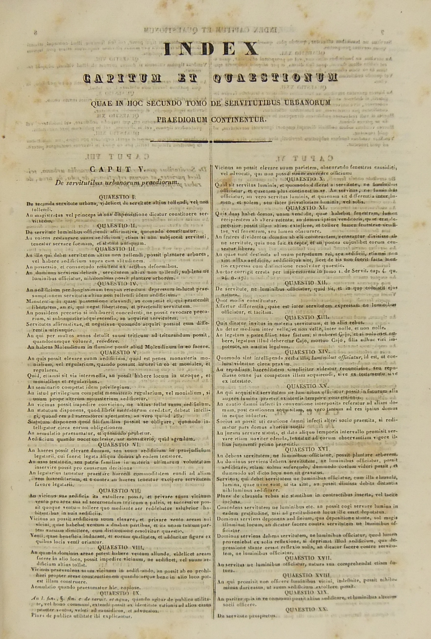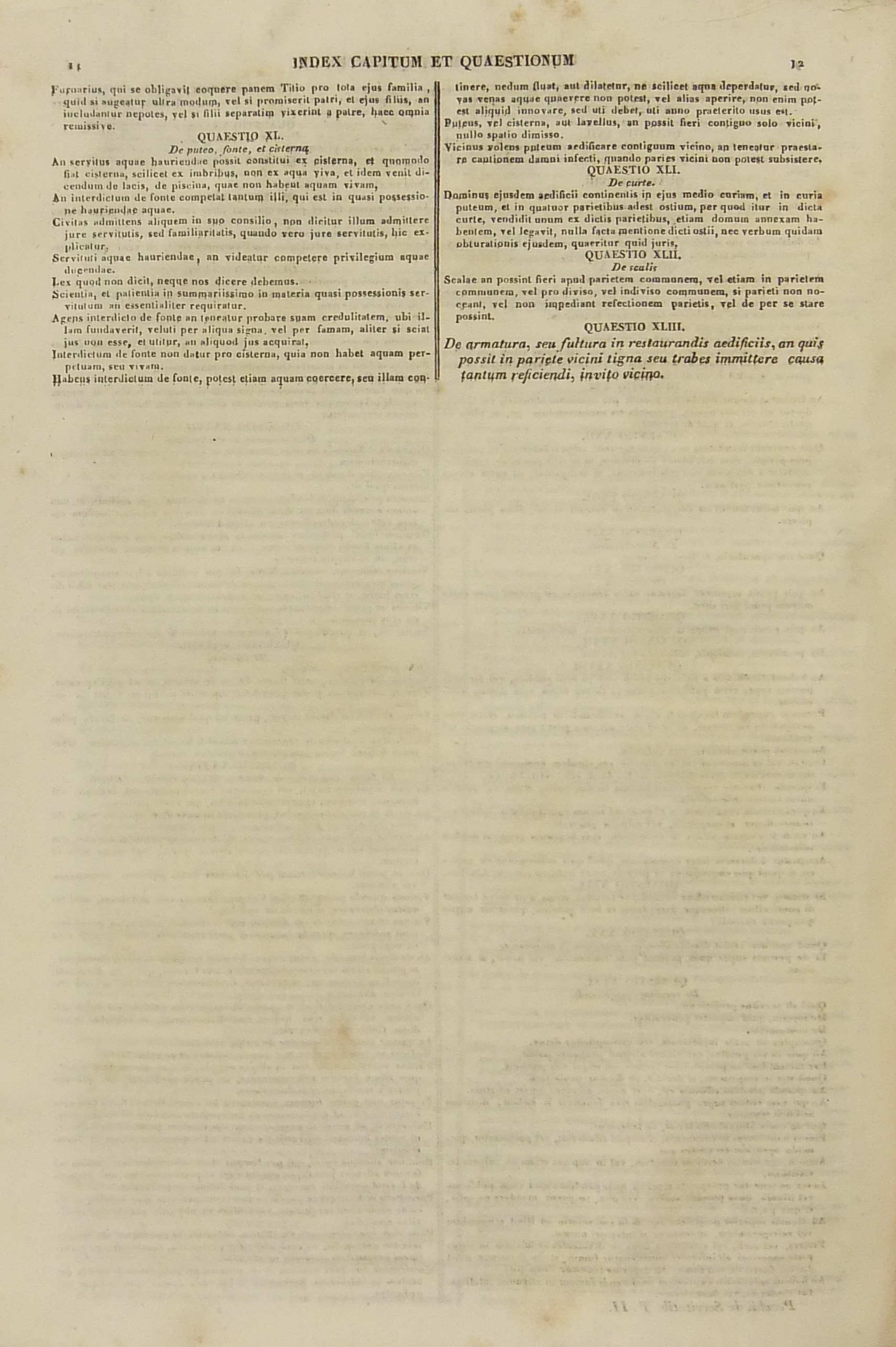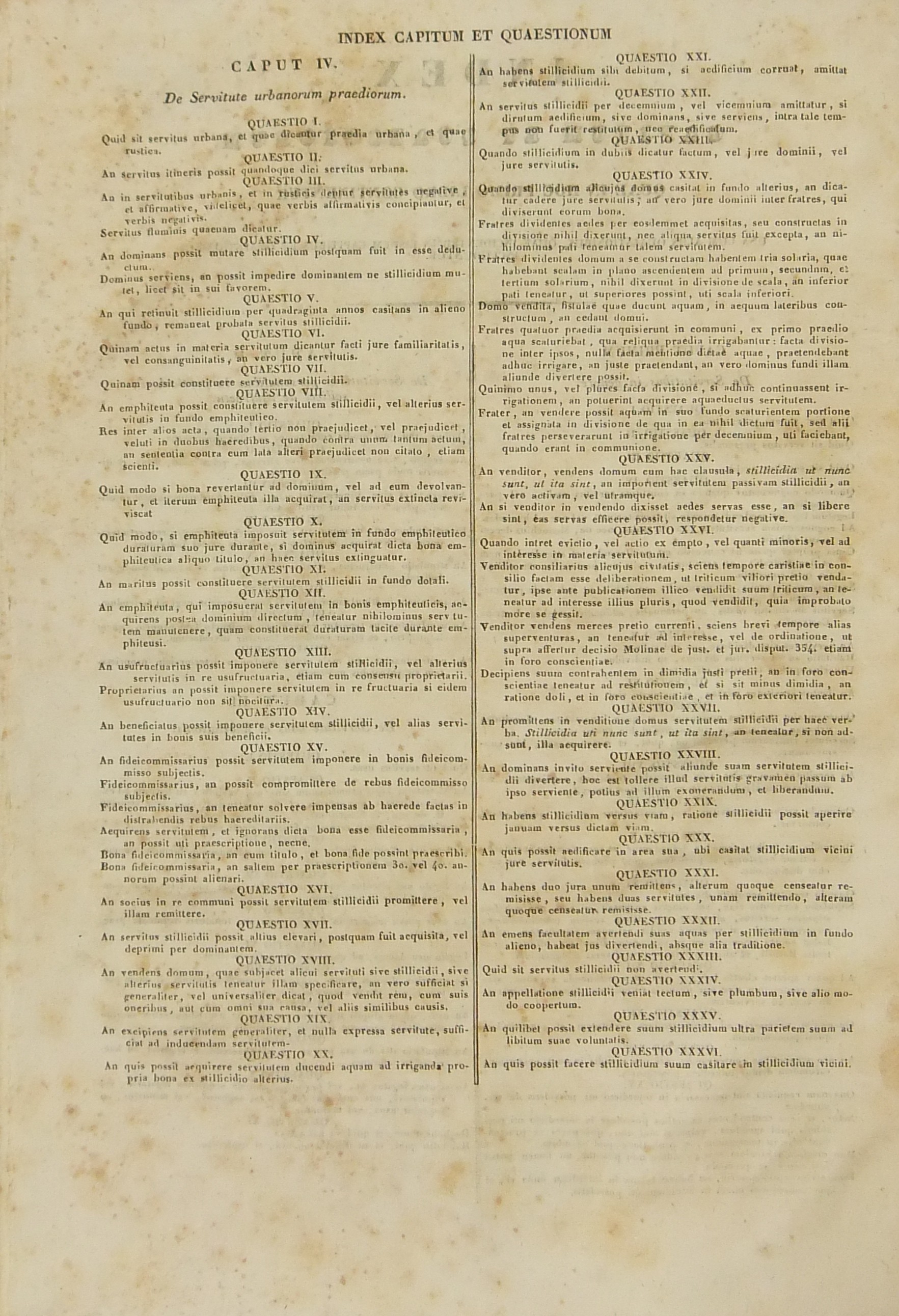 Francisci Mariae Pecchii.. Tractatus de servitutibus in genere. Opus valde utile et necessarium omnibus.. Cum indice quaestionum et materiarum copiosissimo Tomus secundus - Tractatus de servitutibus urbanis.. Cum indice quaestionum et materiarum copiosissimo