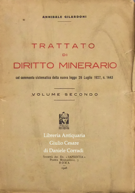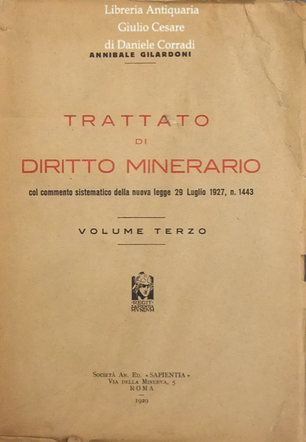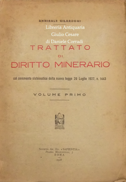 Trattato di diritto minerario col commento sistematico della nuova legge 29 luglio 1927, n. 1443