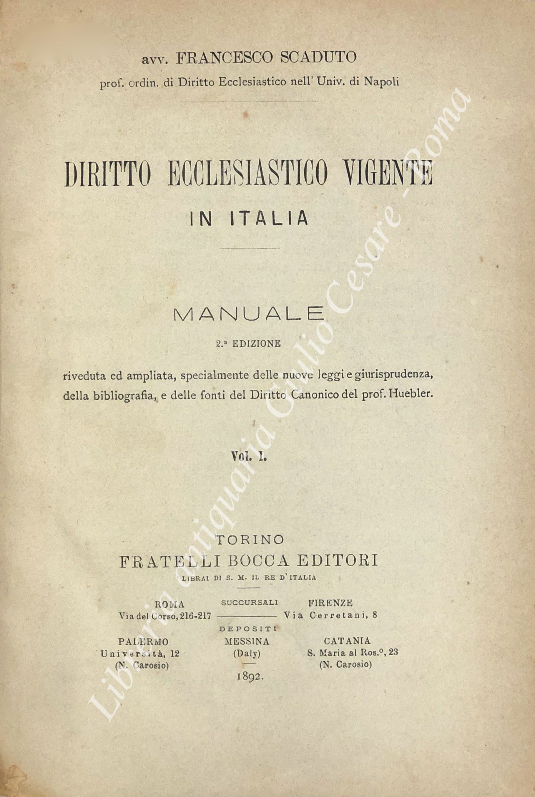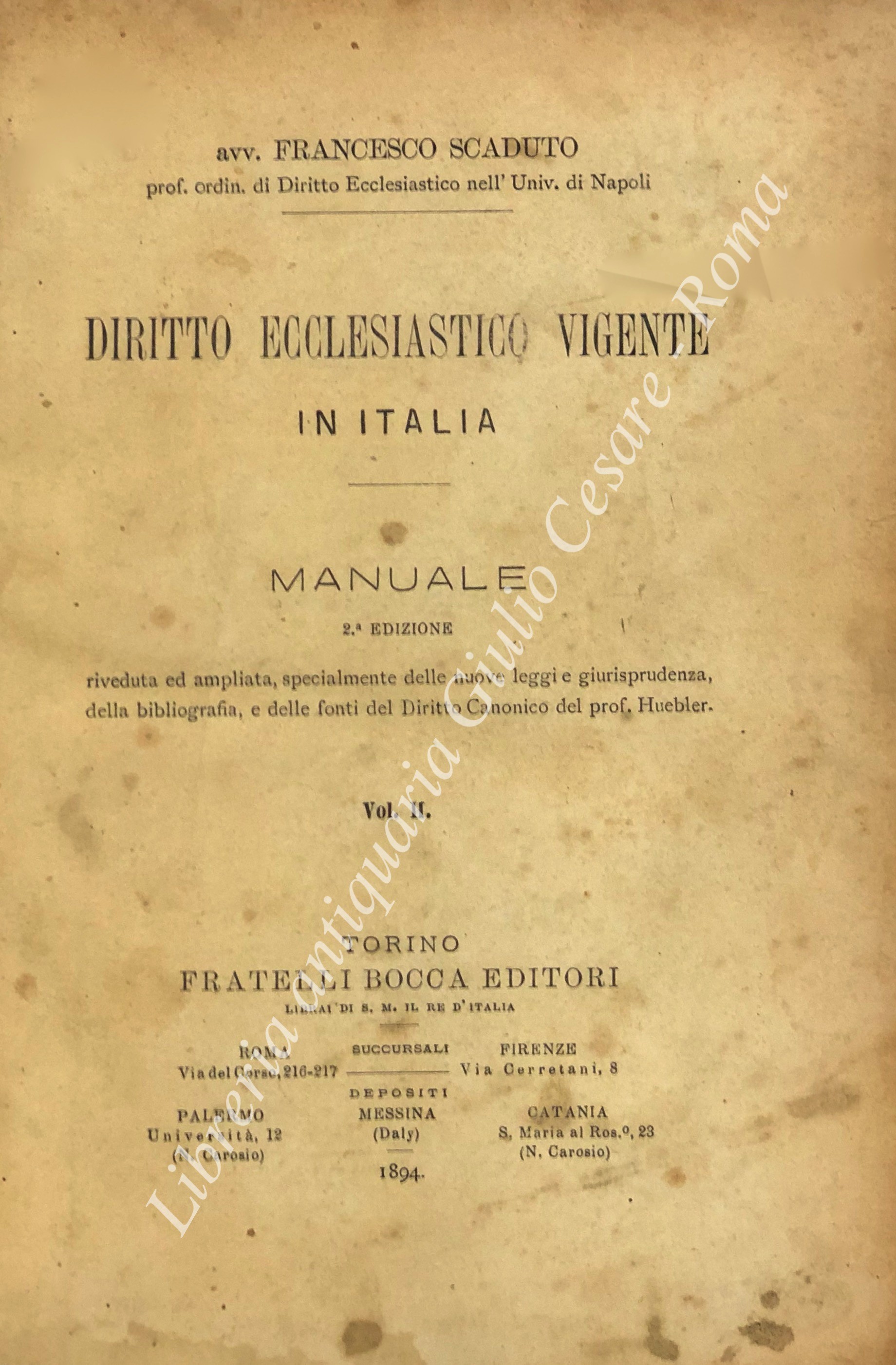 Seconda edizione riveduta ed ampliata specialmente delle nuove leggi e giurisprudenza della bibliografia e delle fonti del Diritto Canonico del prof. HueblerLuogo: Firenze