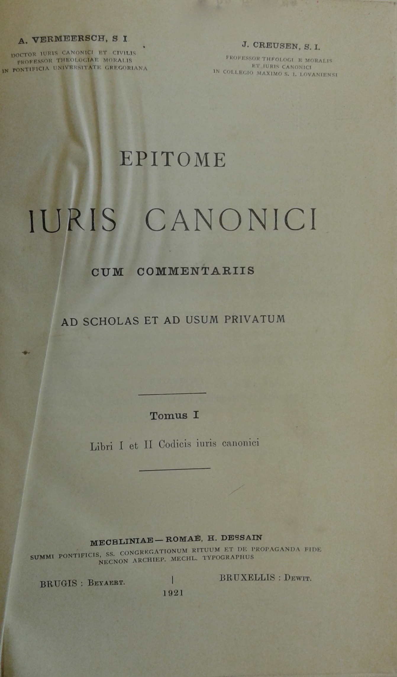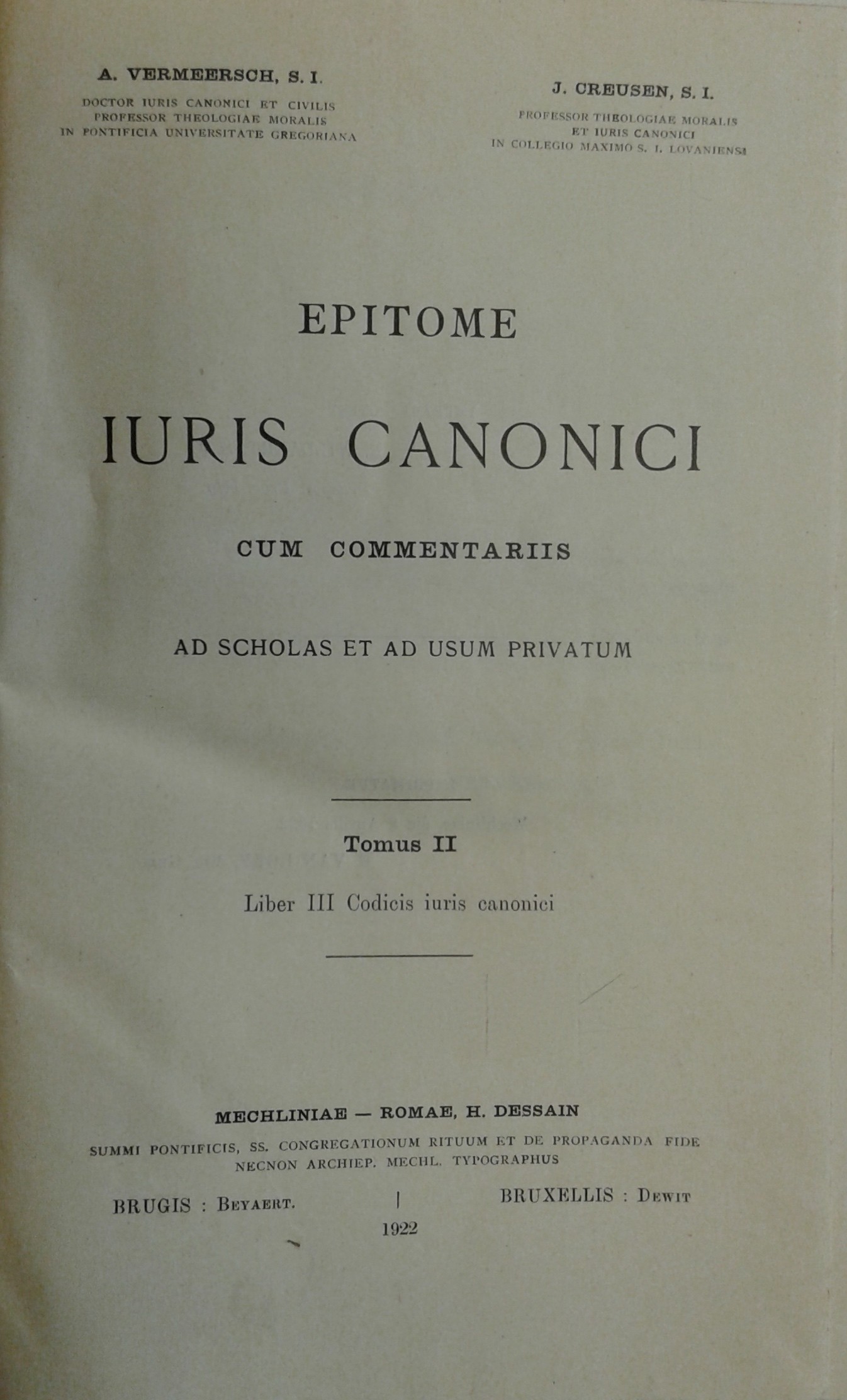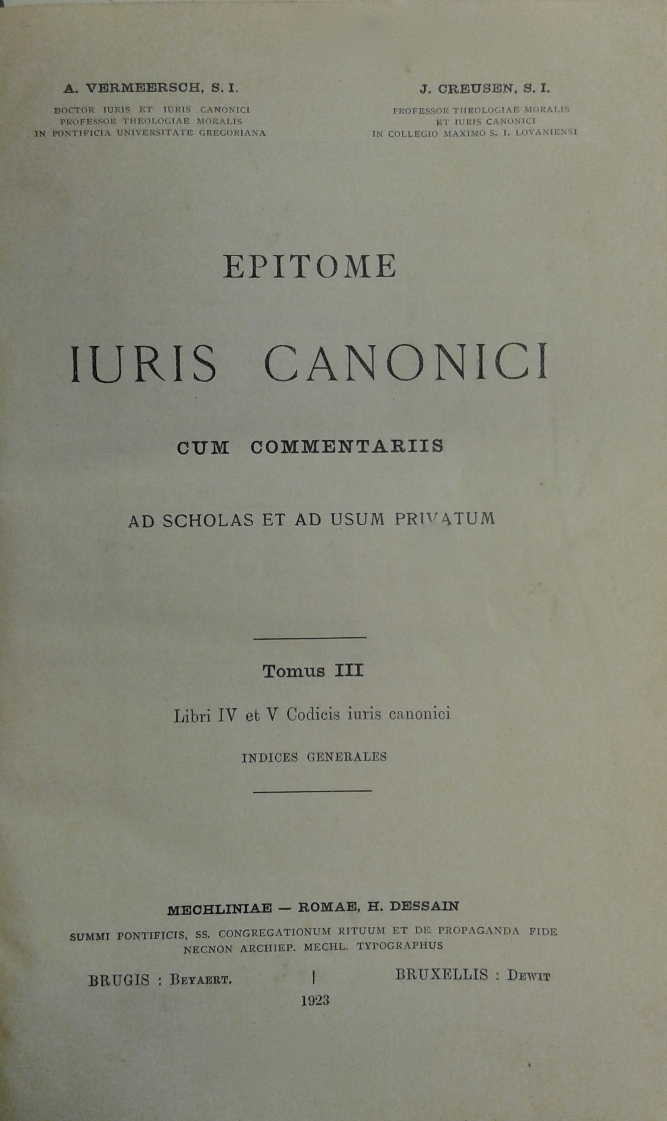 Epitome iuris canonici. Cum commentariis ad scholas et ad usum privatum. Tomus I - Libri I et II Codicis iuris canonici Tomus II - Libri III Codicis iuris canonici Tomus III - Libri IV et V Codicis iuris canonici