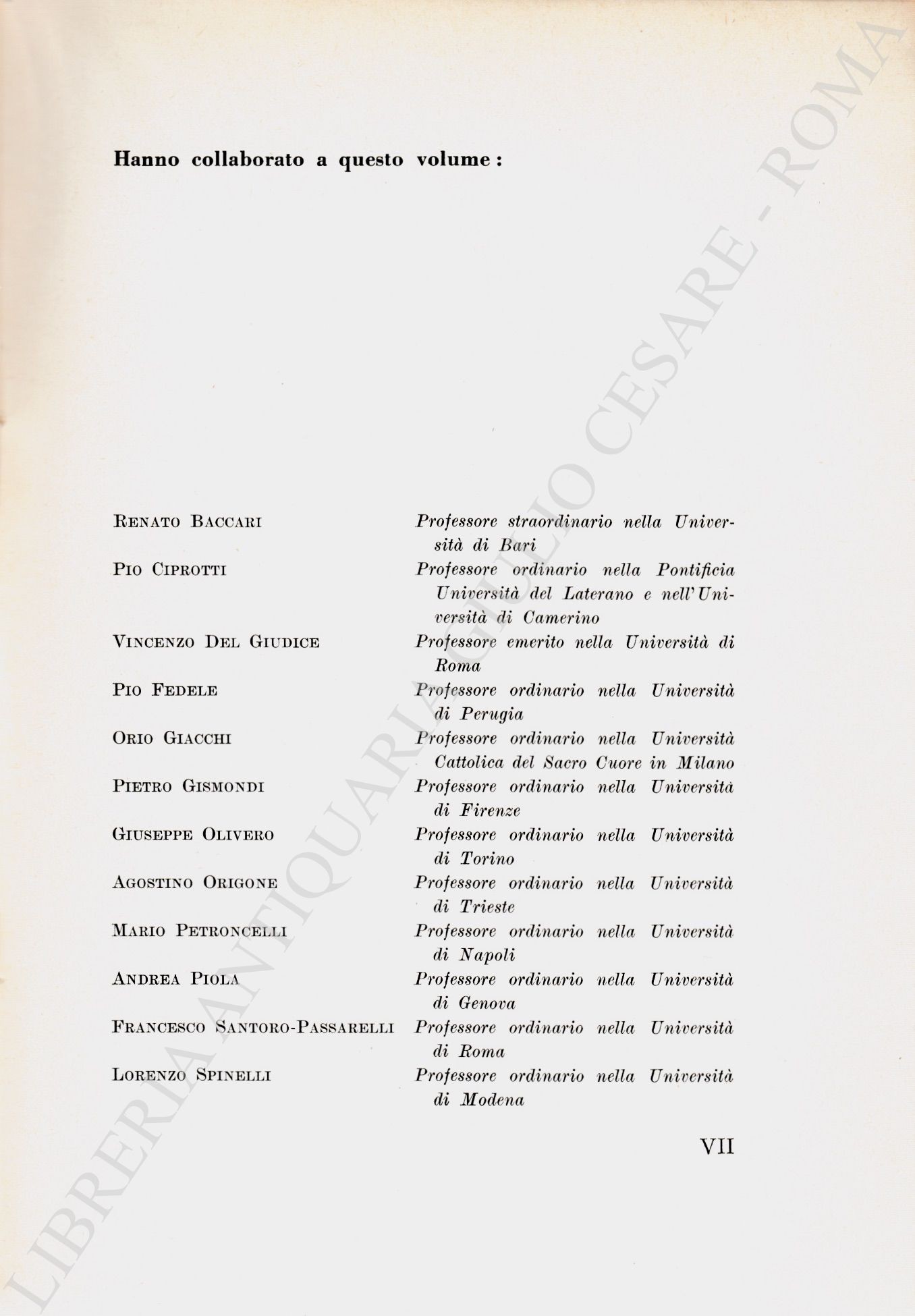 A cura dell’Unione Giuristi Cattolici Italiani. Vincenzo del Giudice, Renato Baccari, Pio Ciprotti, Pio Fedele, Orio Giacchi, Pietro Gismondi, Giuseppe Olivero, Agostino Origone, Mario Petroncelli, Andrea Piola, Francesco Santoro-Passarelli, Lorenzo Spinelli