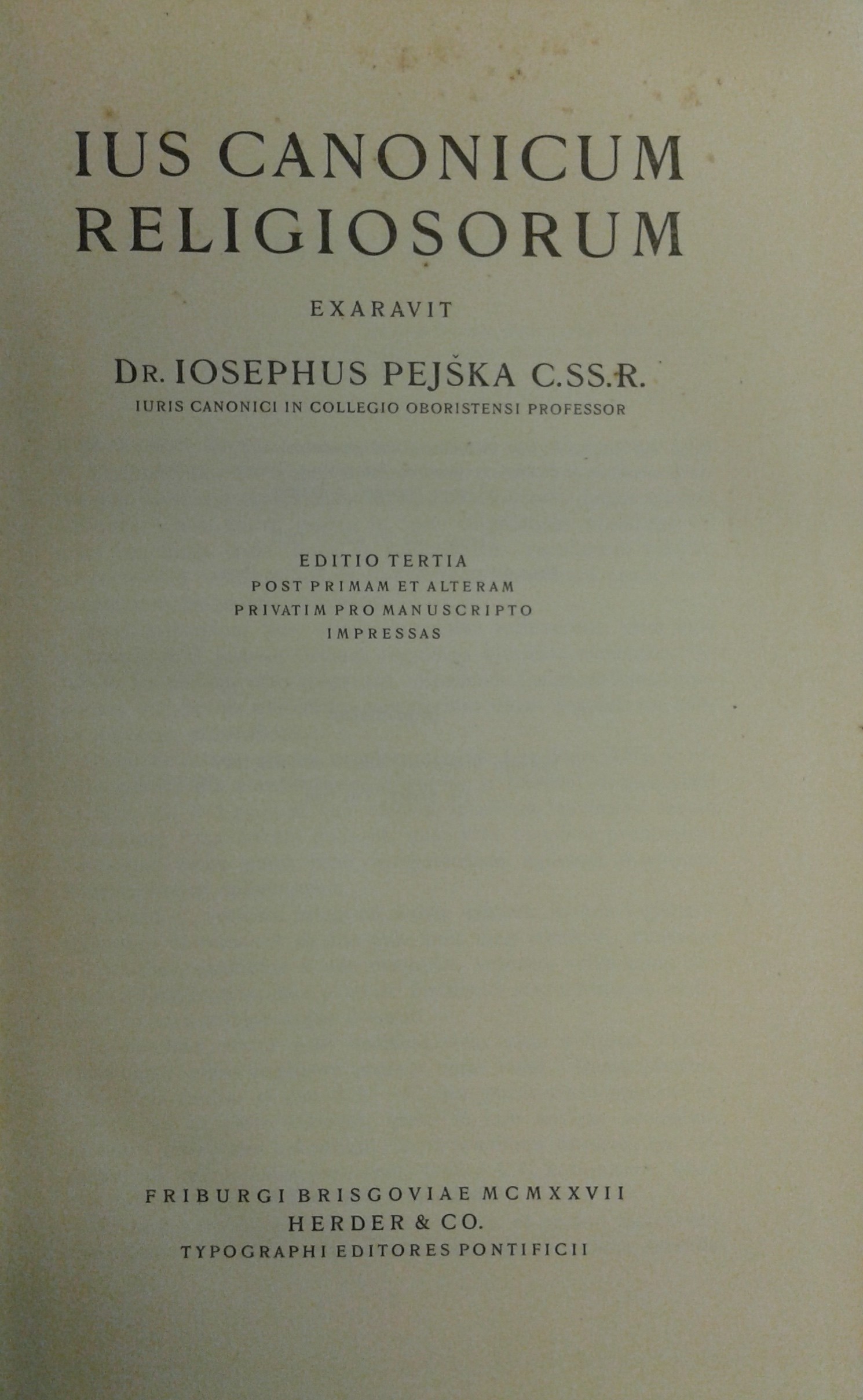 Ius canonicum religiosorum exaravit Iosephus Peiska