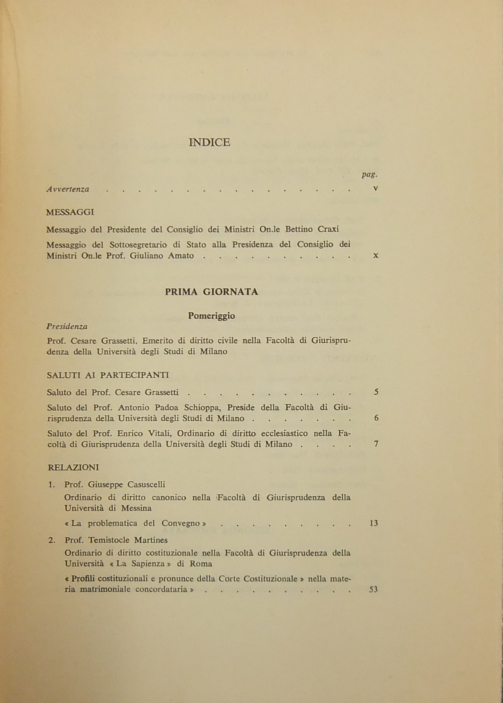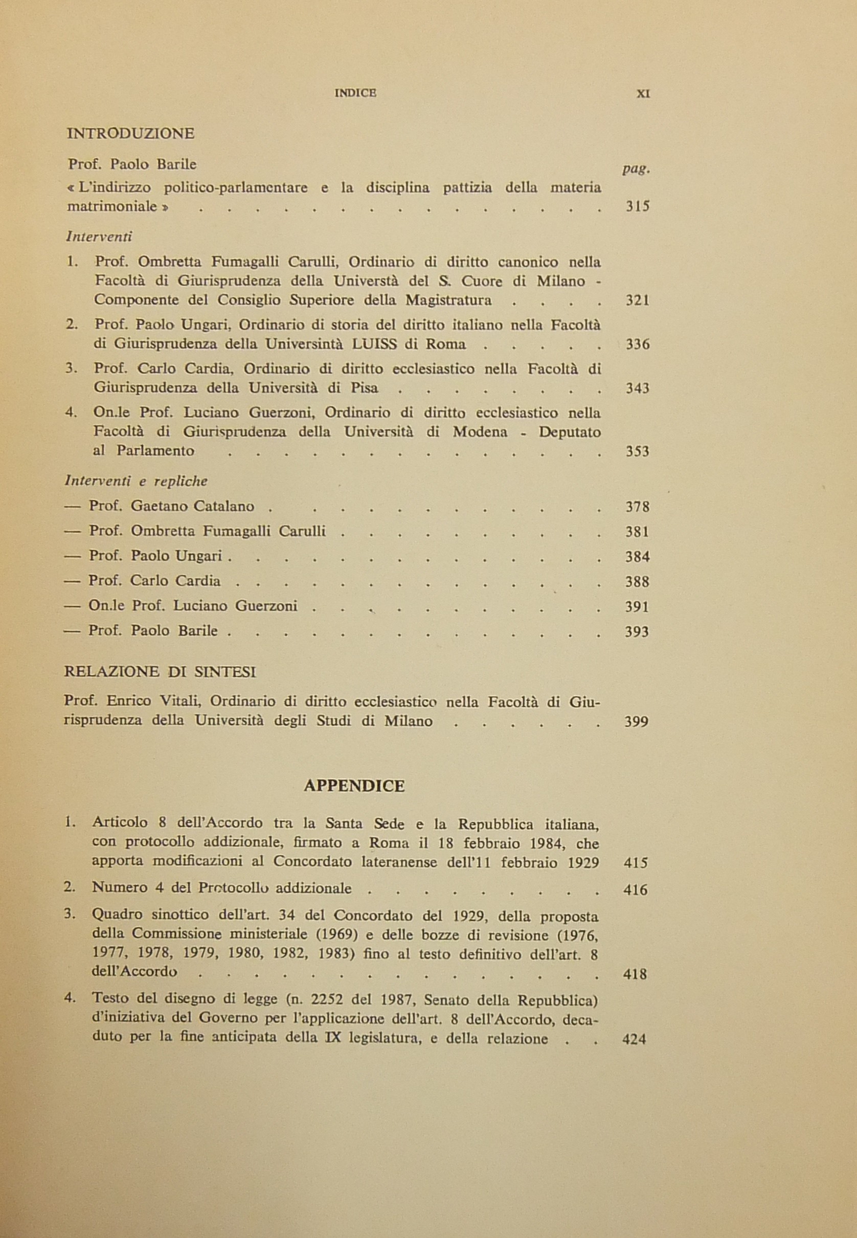 Scritti di: Barile, Berlingò, Bianca, Bile, Brancaccio, Cardia, Casellati Alberti, Casucelli, Catalano, De Luca, Finocchiaro, Fumagalli Carulli, Gismondi, Guerzoni, Mantuano, Martines, Mauro, Patti, Santosuosso, Schlesinger, Spinelli, Tamburrino, Tosi, Ungari, Vitali, Ziccardi.