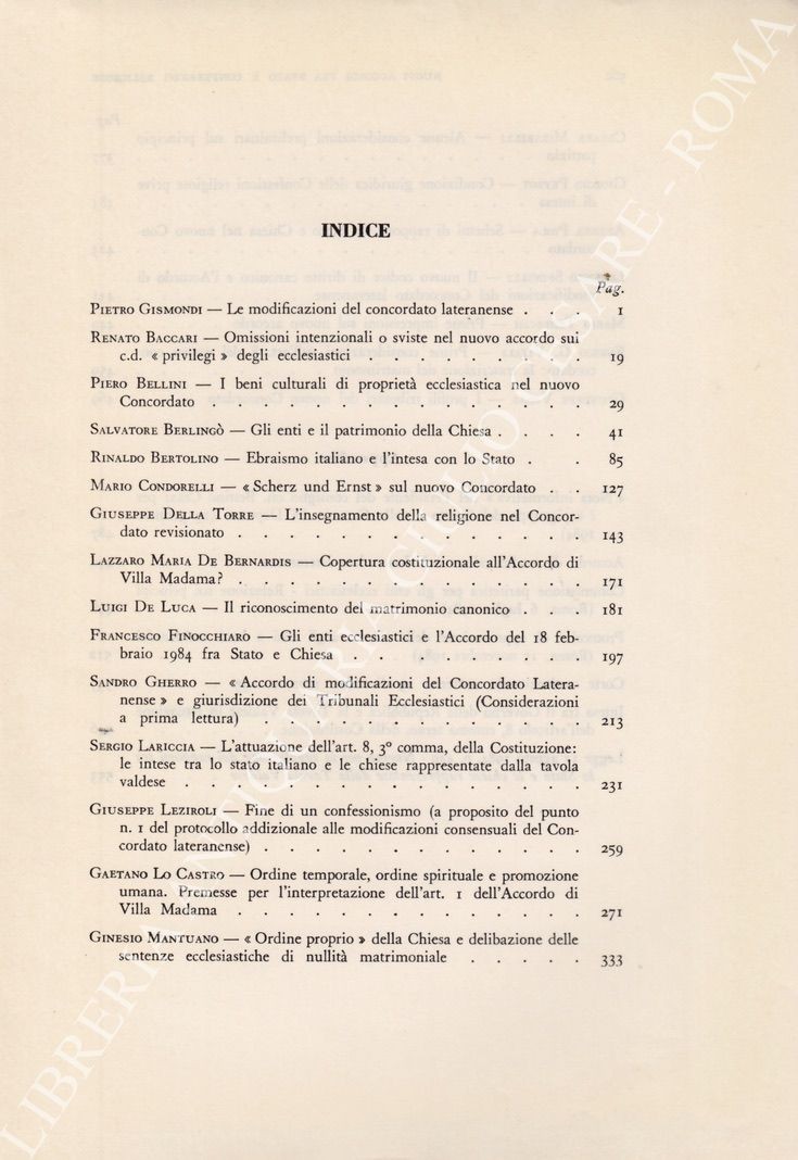 Nuovi accordi fra Stato e confessioni religiose. Studi e testi. Con saggio introduttivo di Pietro Gismondi