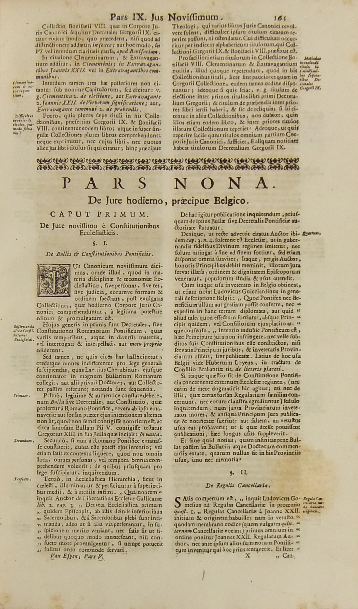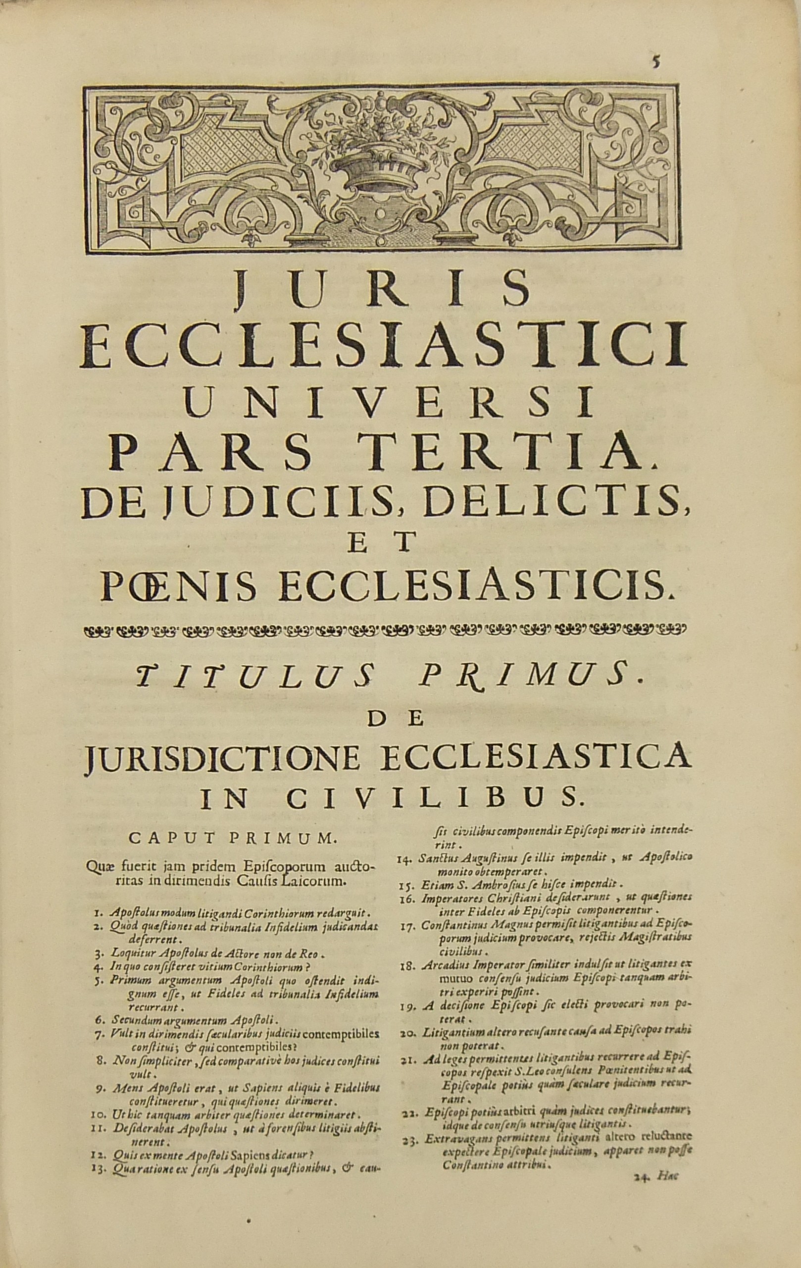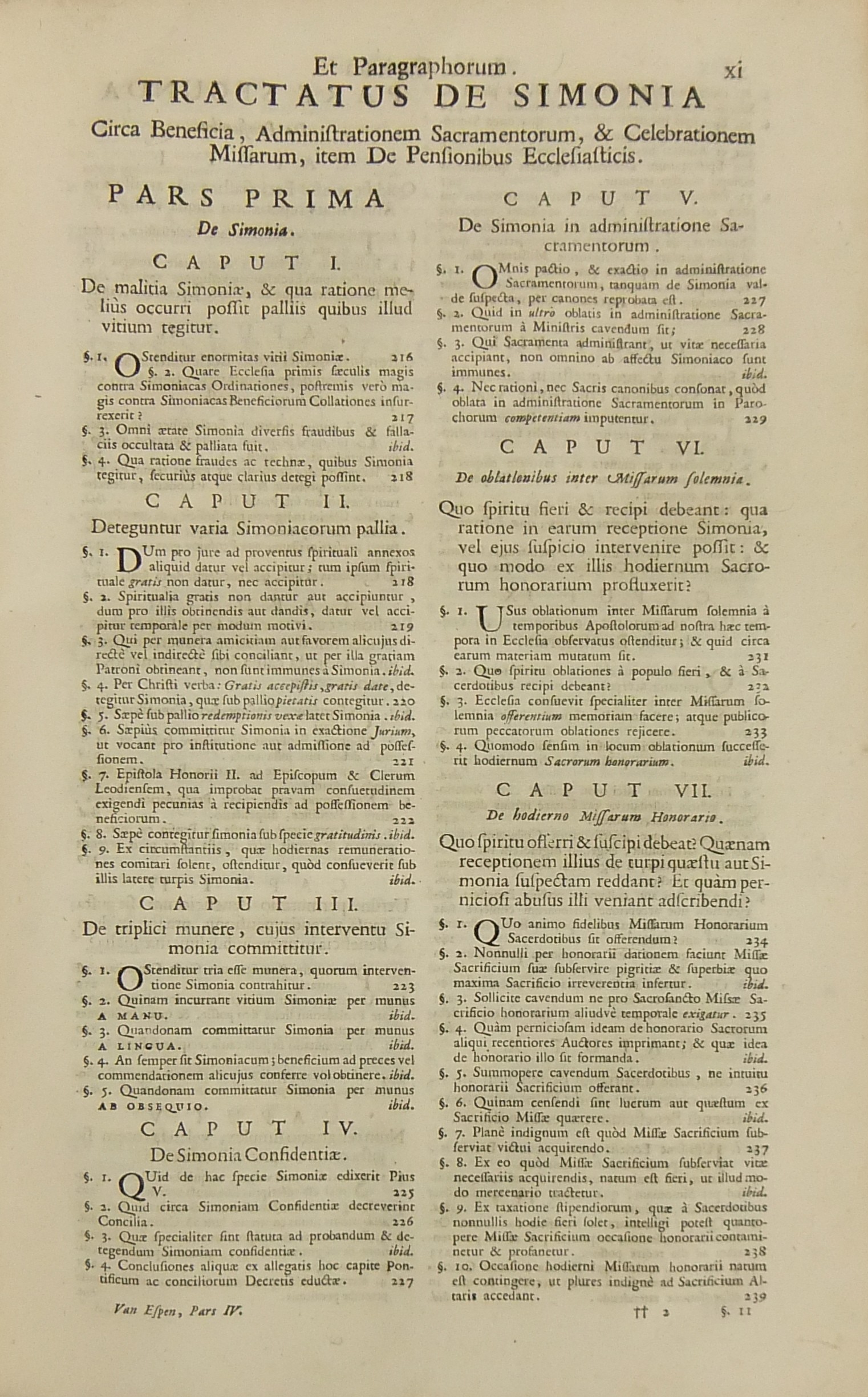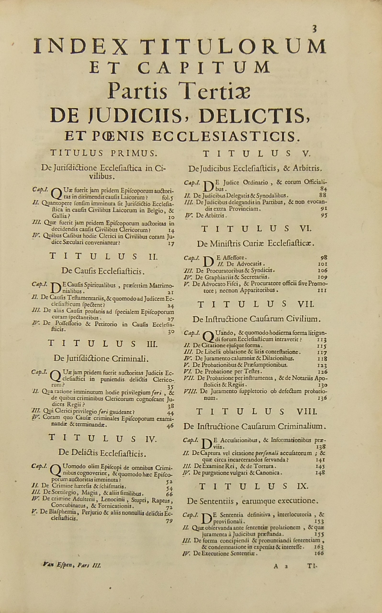 Operum quae hactenus in lucem prodierunt Pars prima complectens juris ecclesiastici universi hodiernae disciplinae praesertim Belgii Galliae Germaniae & vicinarum Provinciarum accommodati primam partem cum additionibus quae in supplemento extabant suis locis diligenter insertis. Pars secunda complectens juris ecclesiastici universi hodiernae disciplinae praesertim Belgii Galliae Germaniae & vicinarum Provinciarum accommodati secundam partem.. Pars tertia complectens juris ecclesiastici universi hodiernae disciplinae praesertim Belgii Galliae Germaniae & vicinarum Provinciarum accommodati tertiam partem.. Pars quarta complectens dissertationes canonicas & tractatus 1. De peculiaritate in religione & simonia circa ingressum religionis. 2. De instituto & officiis canonicorum. 3. De horis canonicis .. 10. De pristinis altarium & ecclesiarum incorporationibus & donationibus &c. Pars quinta complectens Tractatum historico-canonicum in omnes Canones Conciliorum tam Graecos quam Latinos unanimi utriusque Ecclesiae Graecae & Latinae consensu probatos nec non breve commentarium ad Decretum Gratiani Pars sexta continens tractatus 1. De promulgatione legum ecclesiasticarum ac speciatim Bullarum & Rescriptorum Curiae Romanae. 2. De Censuris Ecclesiasticis. 3. De intercessione episcoporum pro Reis &c. sive de immunitate locali seu Asylo templorum. 4. Concordia immunitatis ecclesiasticae & Juris Regii. 5. De recursu ad principem