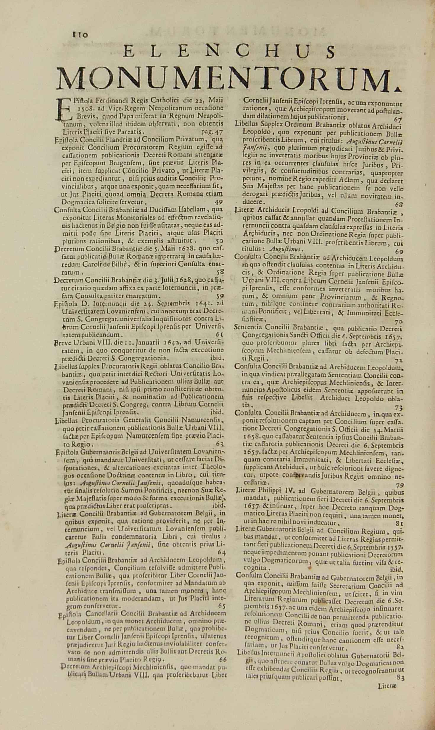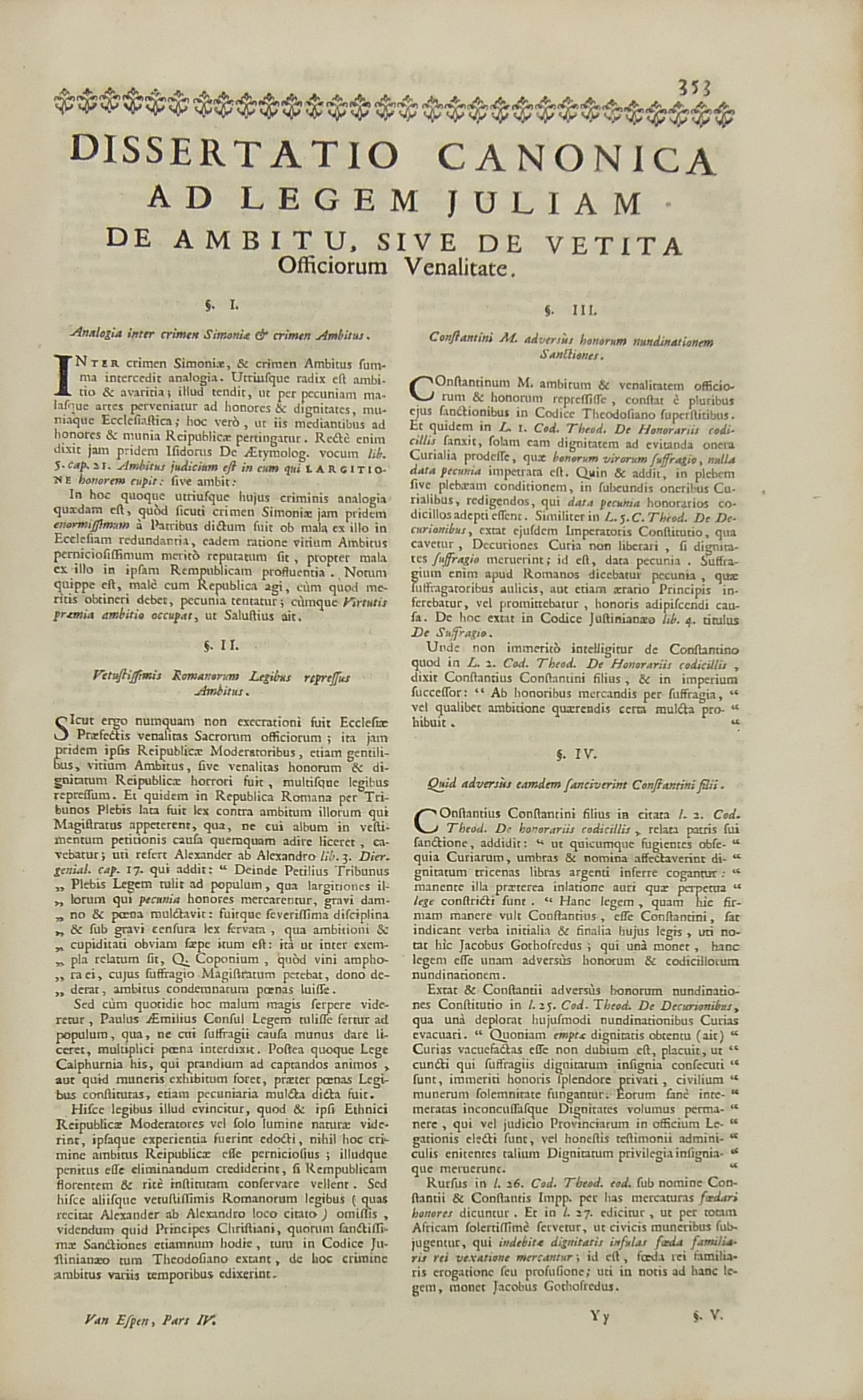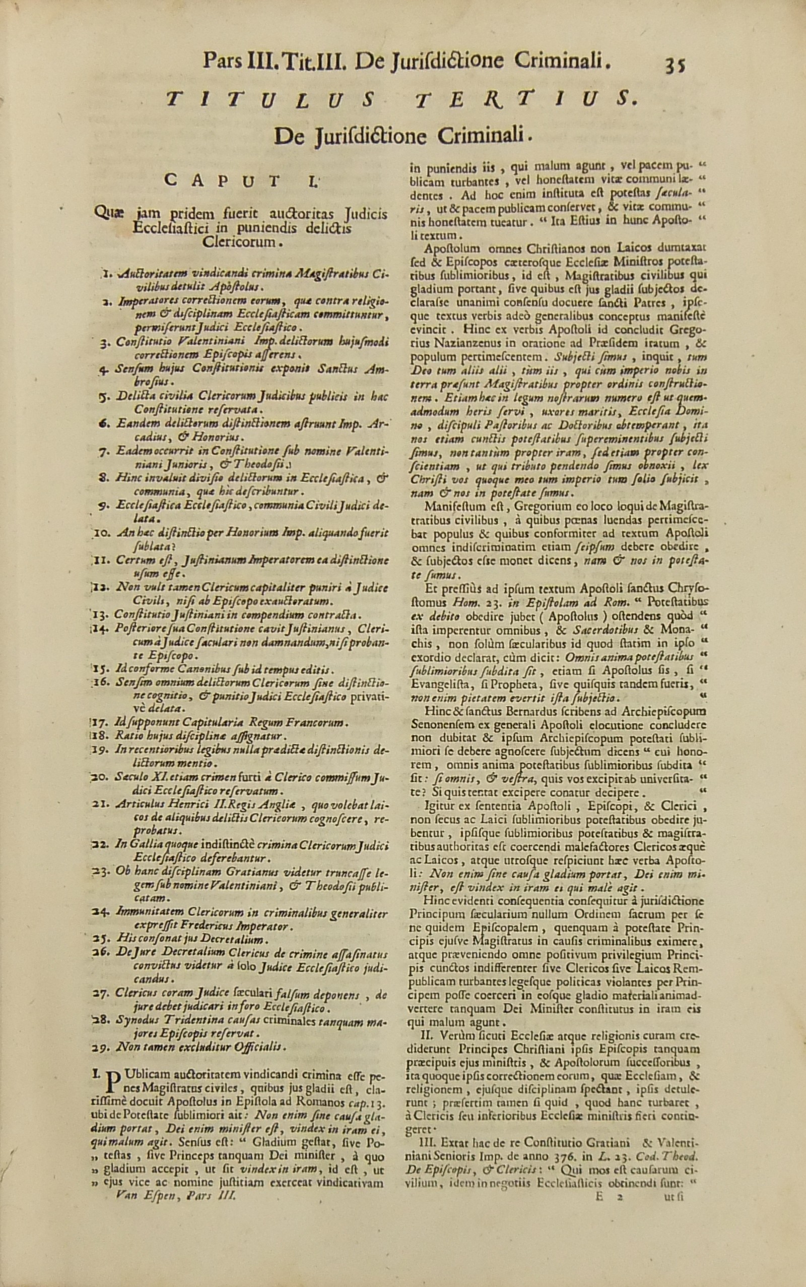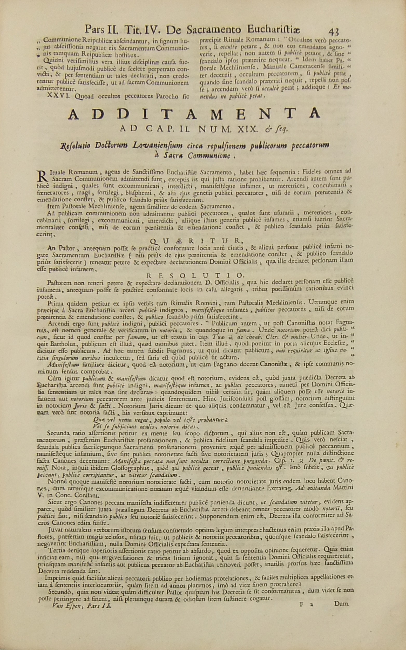 Operum quae hactenus in lucem prodierunt Pars prima complectens juris ecclesiastici universi hodiernae disciplinae praesertim Belgii Galliae Germaniae & vicinarum Provinciarum accommodati primam partem cum additionibus quae in supplemento extabant suis locis diligenter insertis. Pars secunda complectens juris ecclesiastici universi hodiernae disciplinae praesertim Belgii Galliae Germaniae & vicinarum Provinciarum accommodati secundam partem.. Pars tertia complectens juris ecclesiastici universi hodiernae disciplinae praesertim Belgii Galliae Germaniae & vicinarum Provinciarum accommodati tertiam partem.. Pars quarta complectens dissertationes canonicas & tractatus 1. De peculiaritate in religione & simonia circa ingressum religionis. 2. De instituto & officiis canonicorum. 3. De horis canonicis .. 10. De pristinis altarium & ecclesiarum incorporationibus & donationibus &c. Pars quinta complectens Tractatum historico-canonicum in omnes Canones Conciliorum tam Graecos quam Latinos unanimi utriusque Ecclesiae Graecae & Latinae consensu probatos nec non breve commentarium ad Decretum Gratiani Pars sexta continens tractatus 1. De promulgatione legum ecclesiasticarum ac speciatim Bullarum & Rescriptorum Curiae Romanae. 2. De Censuris Ecclesiasticis. 3. De intercessione episcoporum pro Reis &c. sive de immunitate locali seu Asylo templorum. 4. Concordia immunitatis ecclesiasticae & Juris Regii. 5. De recursu ad principem