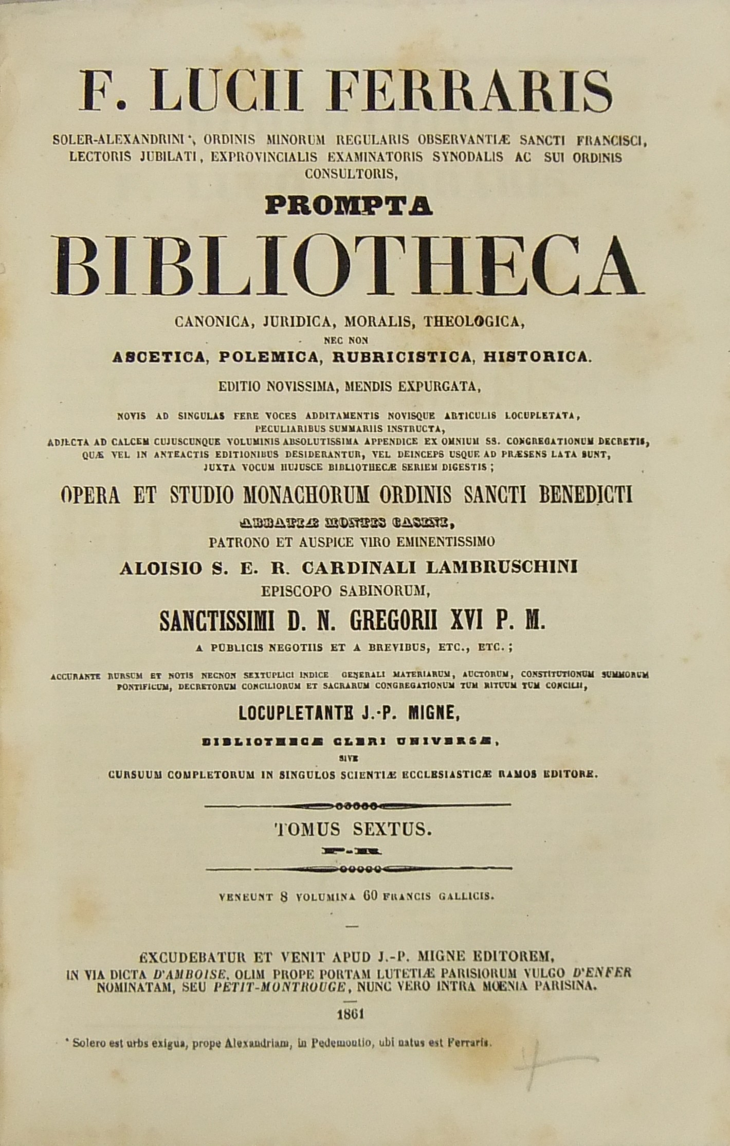 Prompta Bibliotheca Canonica Juridica Moralis Theologica nec non Ascetica Polemica Rubricistica Historica. Editio novissima mendis expurgata...