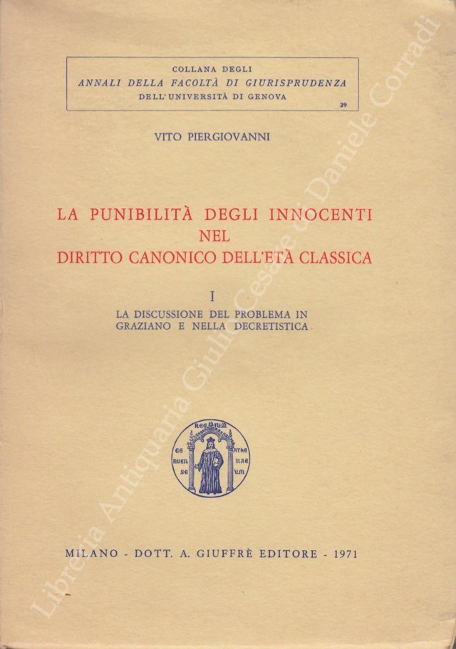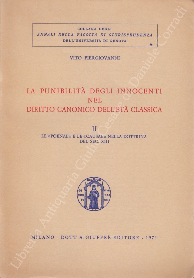 La punibilità degli innocenti nel diritto canonico dell'età classica. Vol. I - La discussione del problema in Graziano e nella decretistica; Vol. II - Le "poenae" e le "causae" nella dottrina del sec. XIII