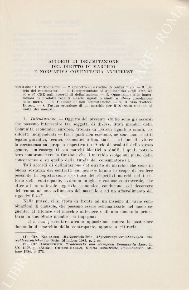 Estratto da: Rivista di Diritto Industriale, pubblicazione trimestrale Anno XXXIII – 1984, Numero 3-4 – Luglio – Dicembre