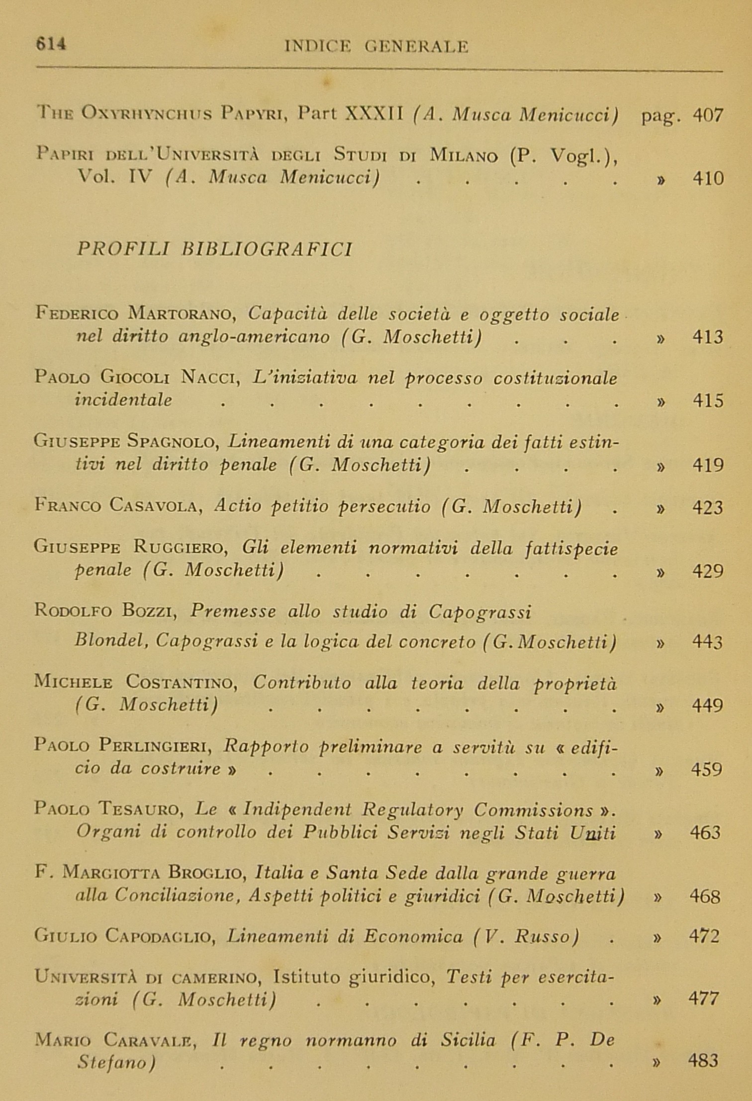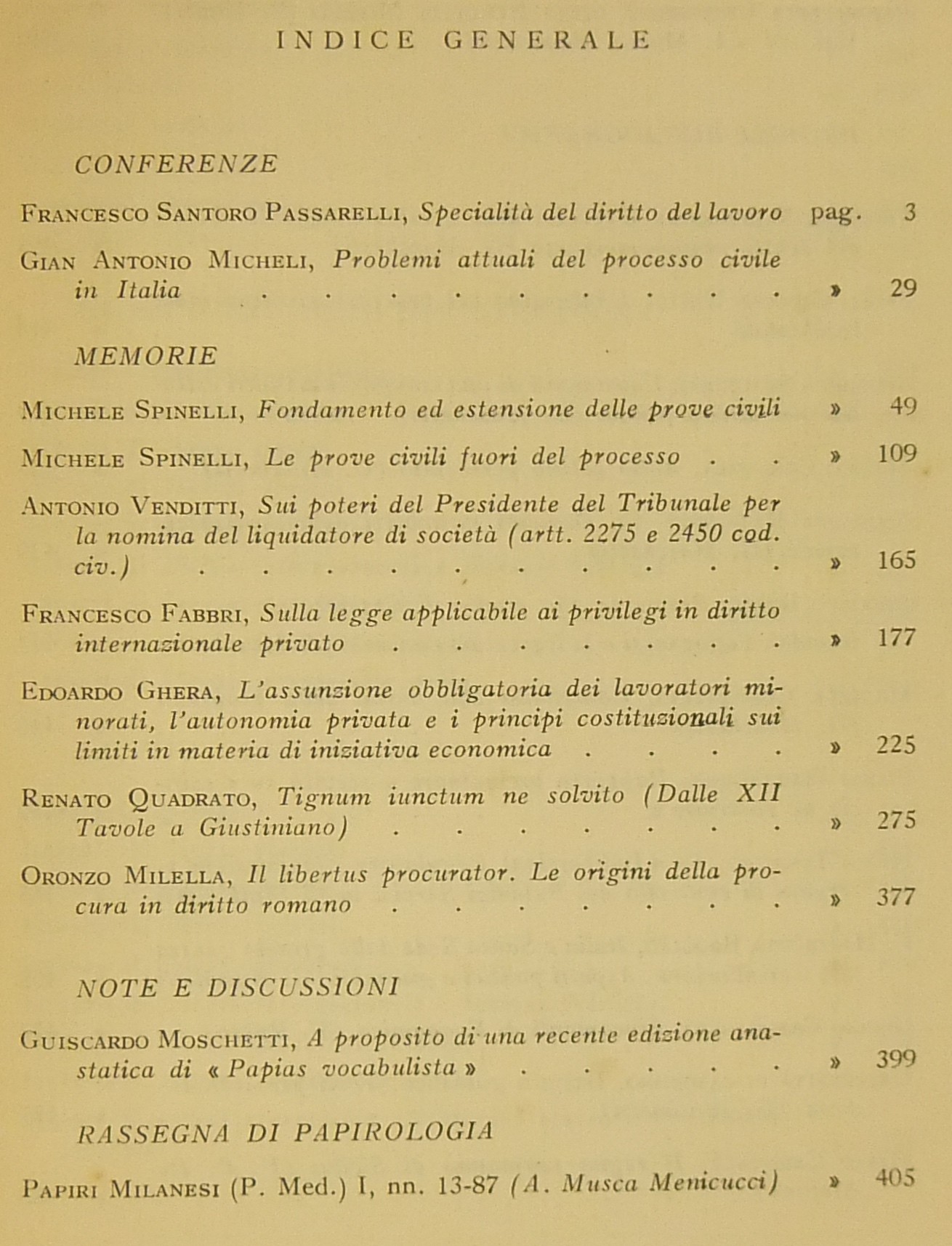 Scritti di: Bozzi, Broglio, Capodaglio, Caravale, Casavola, Costantino, Fabbri, Ghera, Giocoli Nacci, Martorano, Milella, Moschetti, Perlingieri, Quadrato, Ruggiero, Santoro Passarelli, Spagnolo, Spinelli, Tesauro, Venditti.