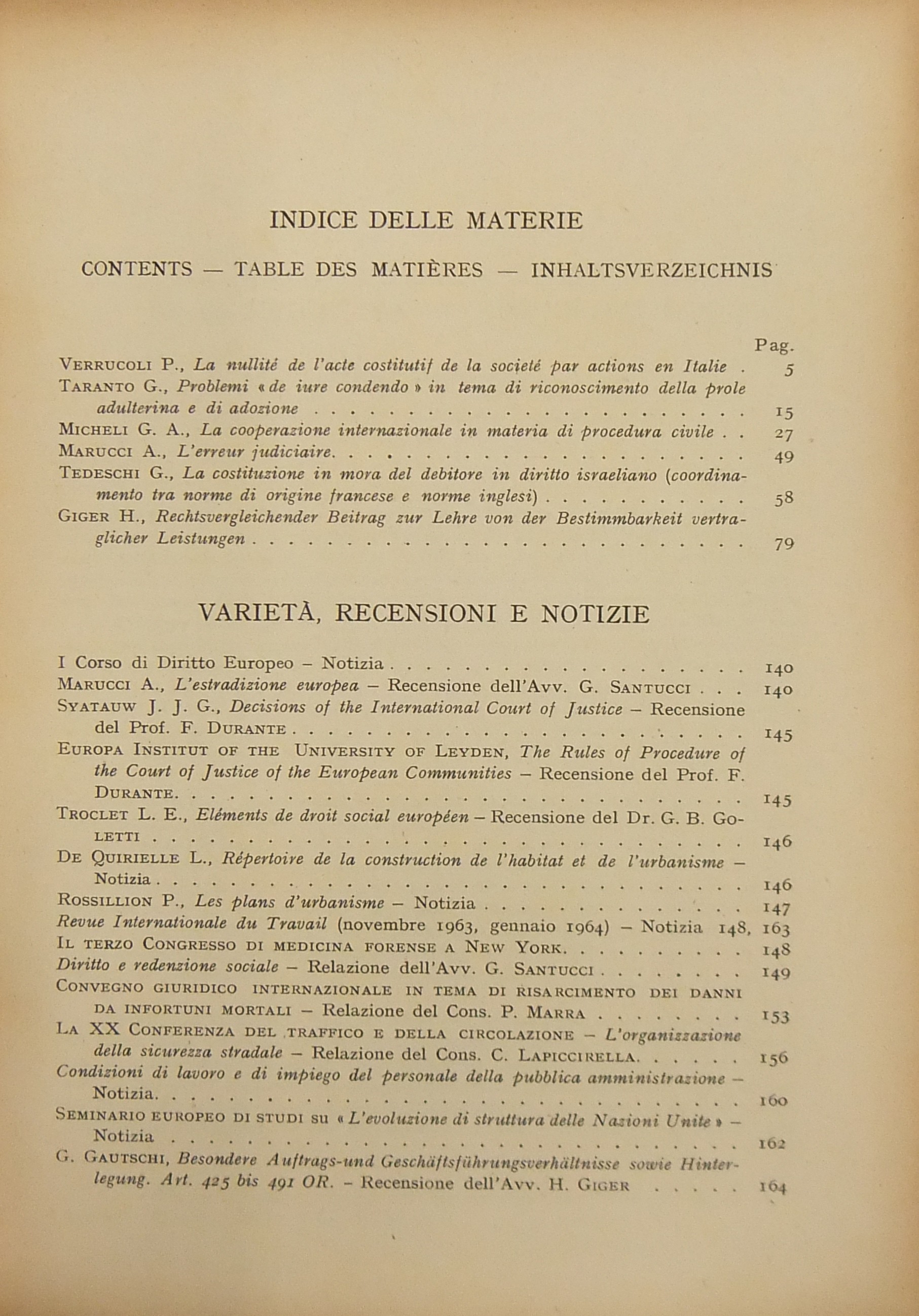 Consiglio direttivo: V.E. Orlando, V. Arangio Ruiz, G. Azzariti. Scritti di: Giger, Marucci, Micheli, Taranto, Tedeschi, Verrucoli.
