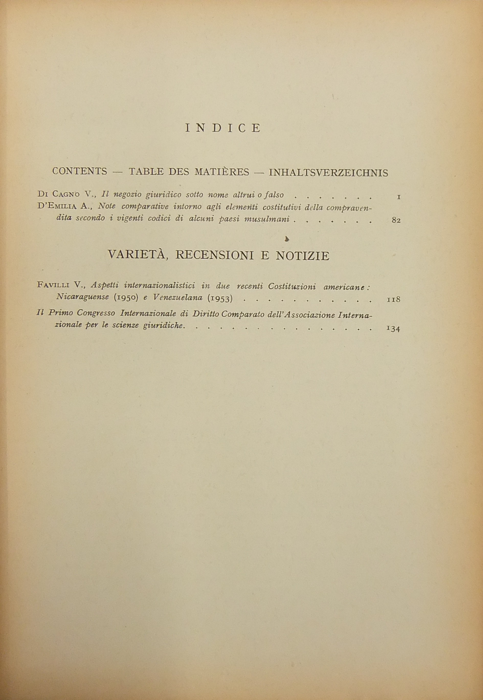 Annuario di diritto comparato e di studi legislativi. A cura di Salvatore Galgano. Terza serie. Vol. XXXII - Fasc. 1: Di Cagno - Il negozio giuridico sotto nome altrui o falso. D'Emilia - Note comparative intorno agli elementi costitutivi della compravendita secondo i vigenti codici di alcuni paesi musulmani