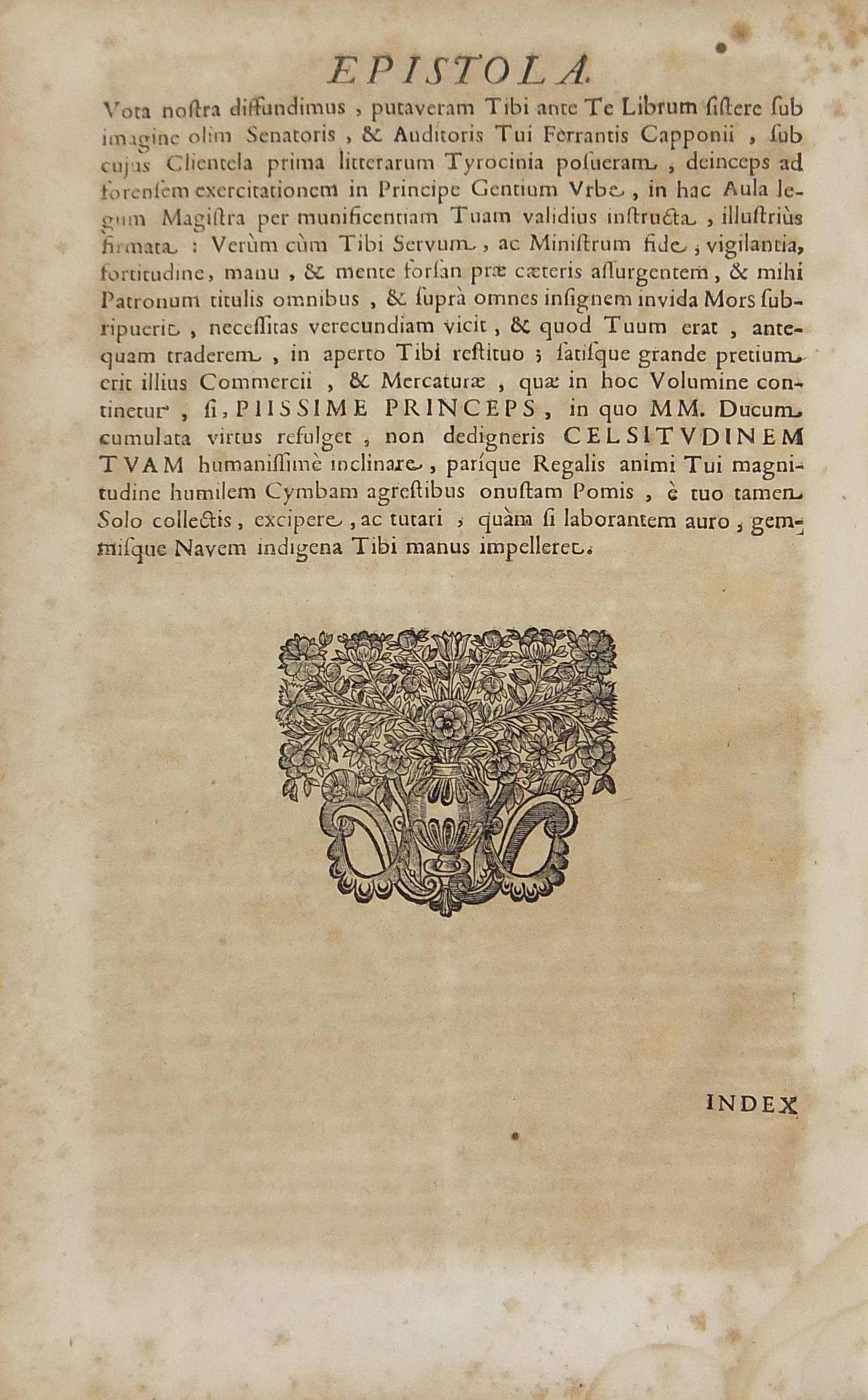 Frontespizio a caratteri neri e rossi, bella marca tipografica, testatine, finalini, capilettera ornati.