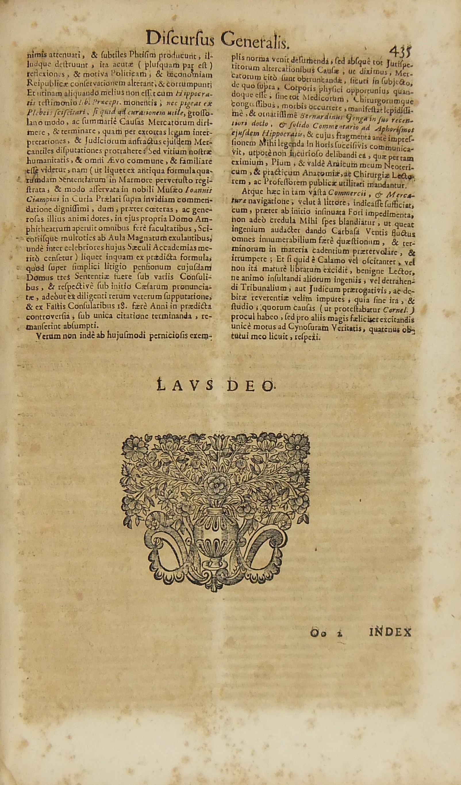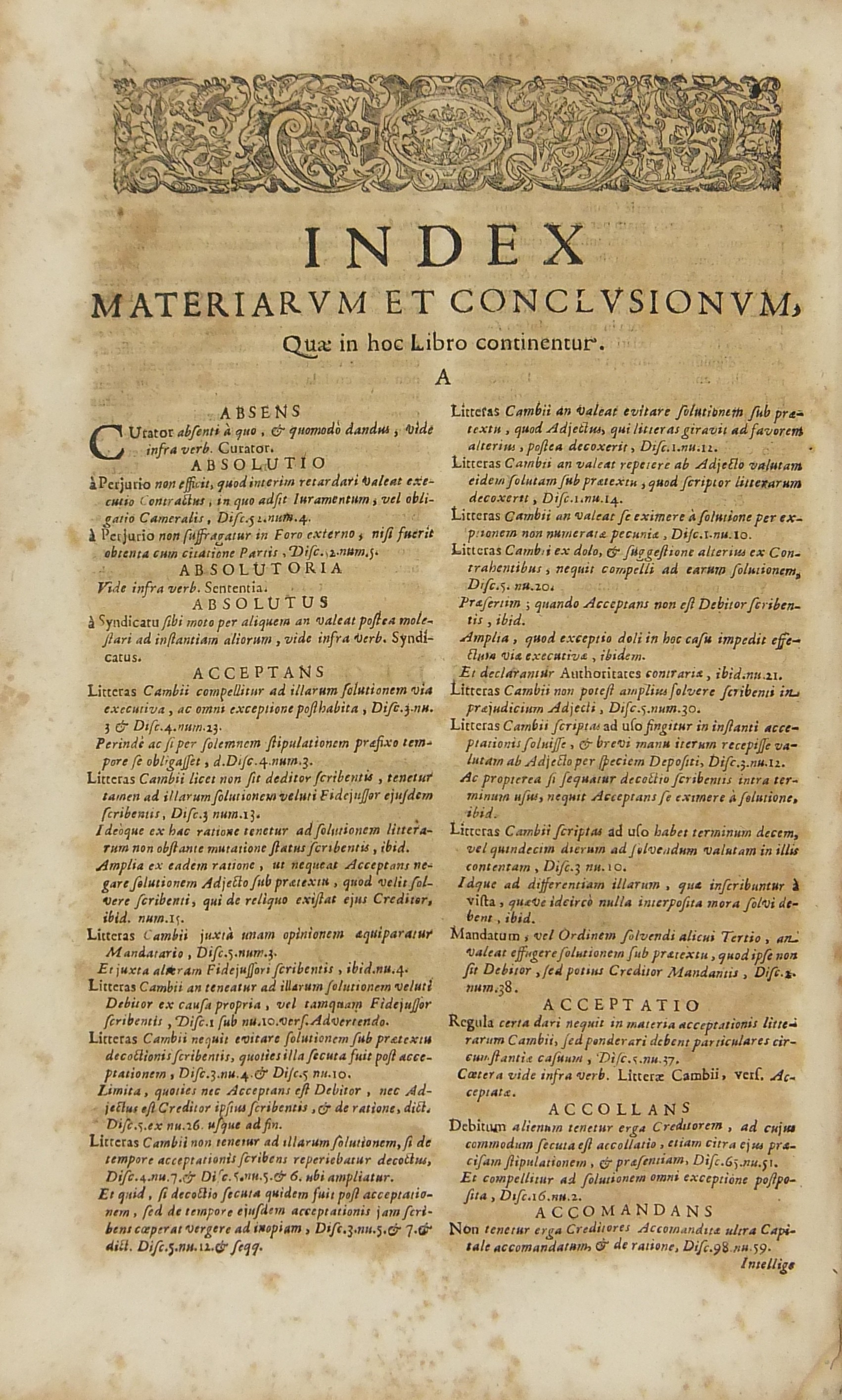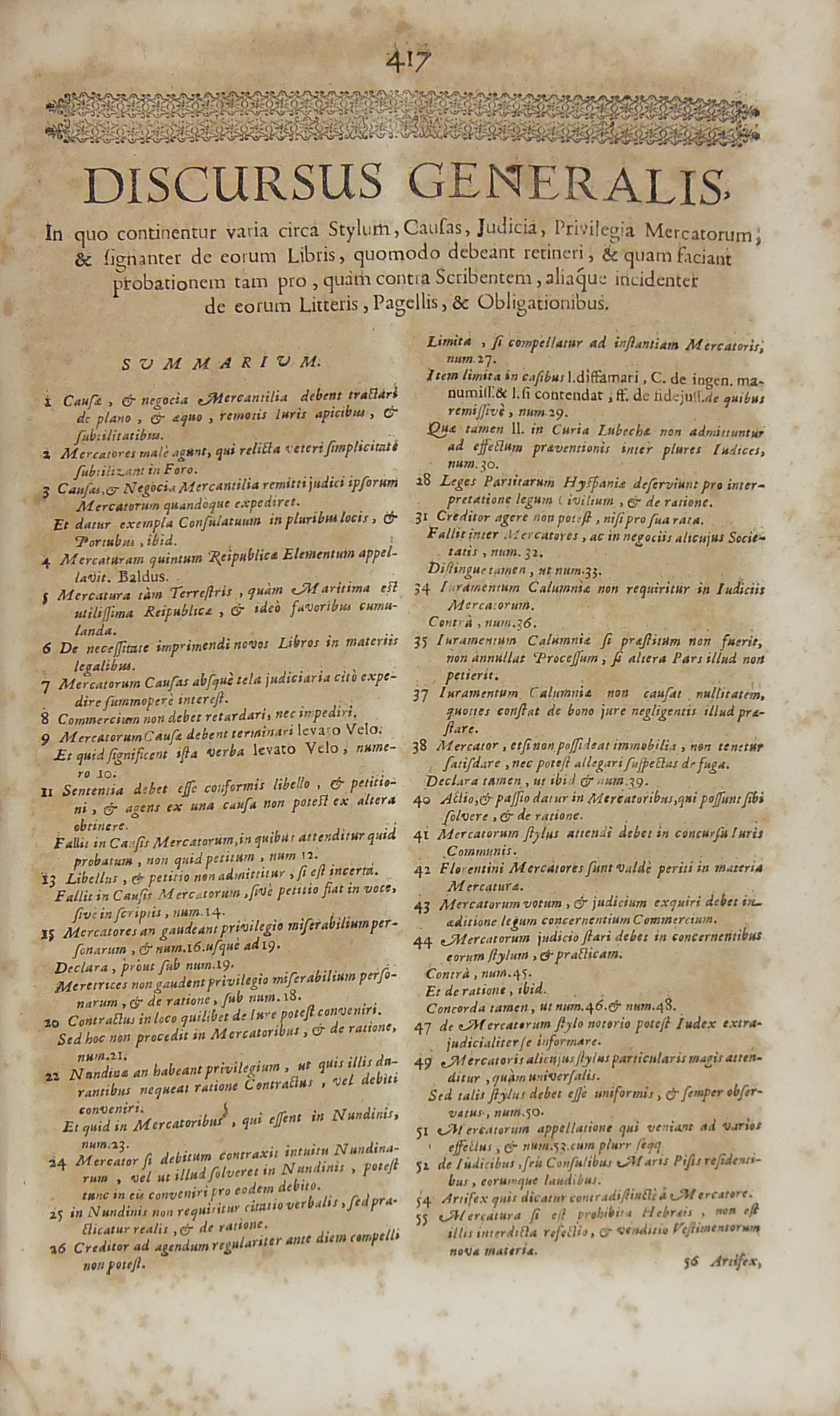 Ansaldi De Ansaldis... Discursus legales de commercio et mercatura. In quibus universa fere commercii et mercaturae Materia resolutive continetur. Cum indice argumentorum causarum materiarum et rerum opulentissimo