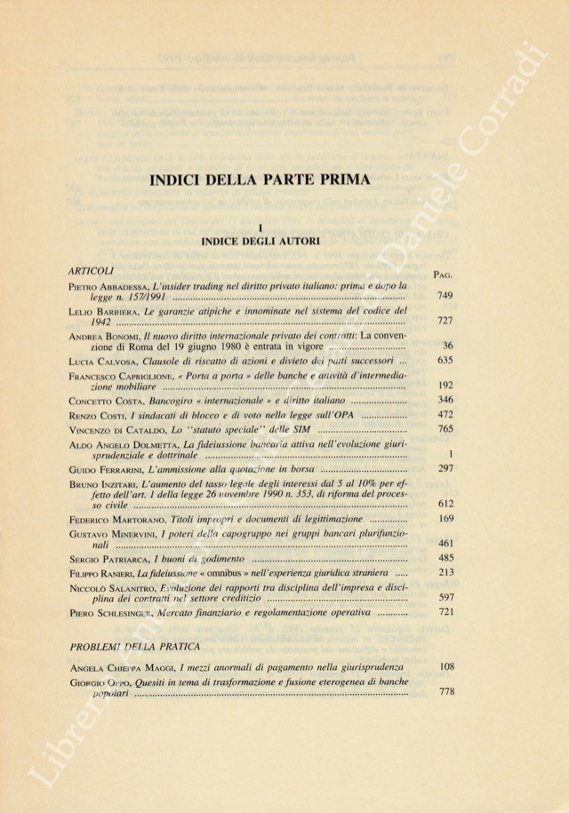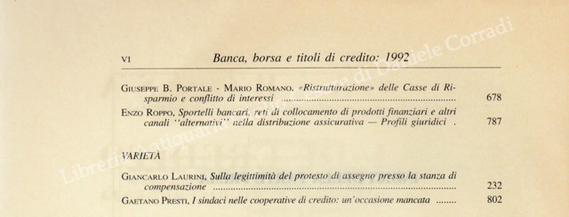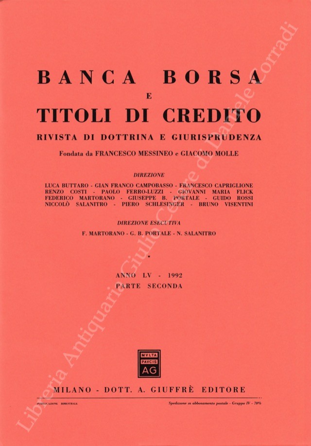 Banca borsa e titoli di credito. Rivista di Dottrina e Giurisprudenza. Fondata da Francesco Messineo e Giacomo Molle. Anno LV - 1992