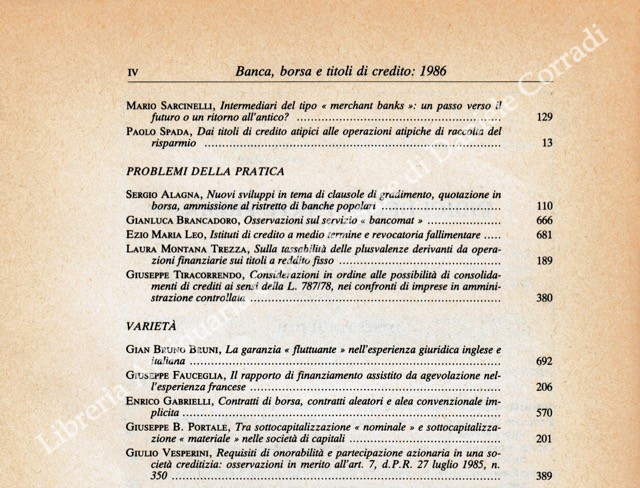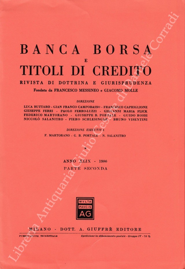 Banca borsa e titoli di credito. Rivista di Dottrina e Giurisprudenza. Fondata da Francesco Messineo e Giacomo Molle. Anno XLIX - 1986