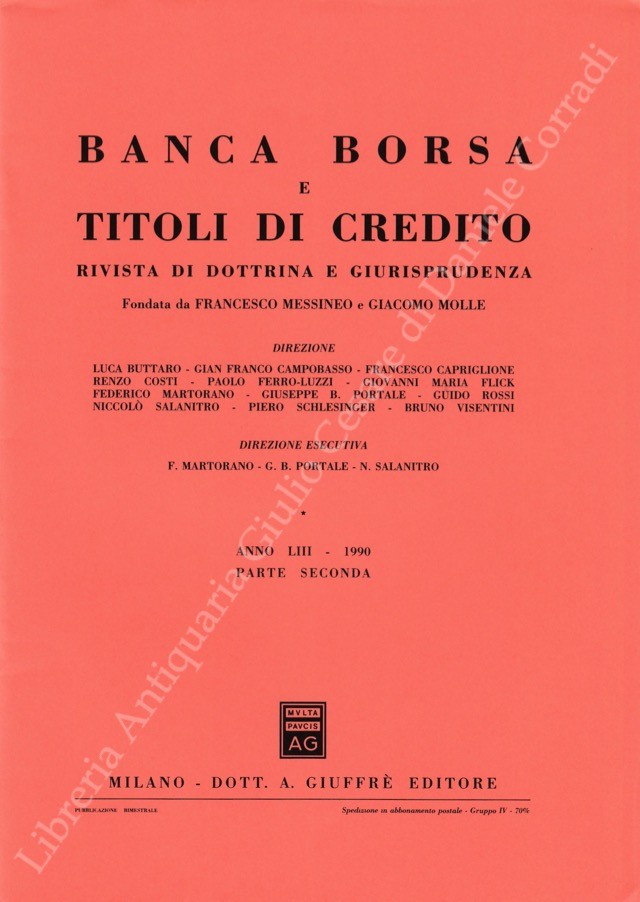 Banca borsa e titoli di credito. Rivista di Dottrina e Giurisprudenza. Fondata da Francesco Messineo e Giacomo Molle. Anno LIII - 1990