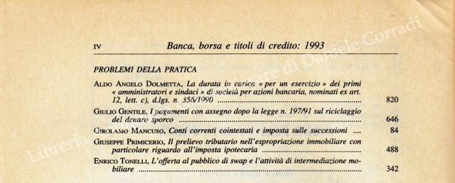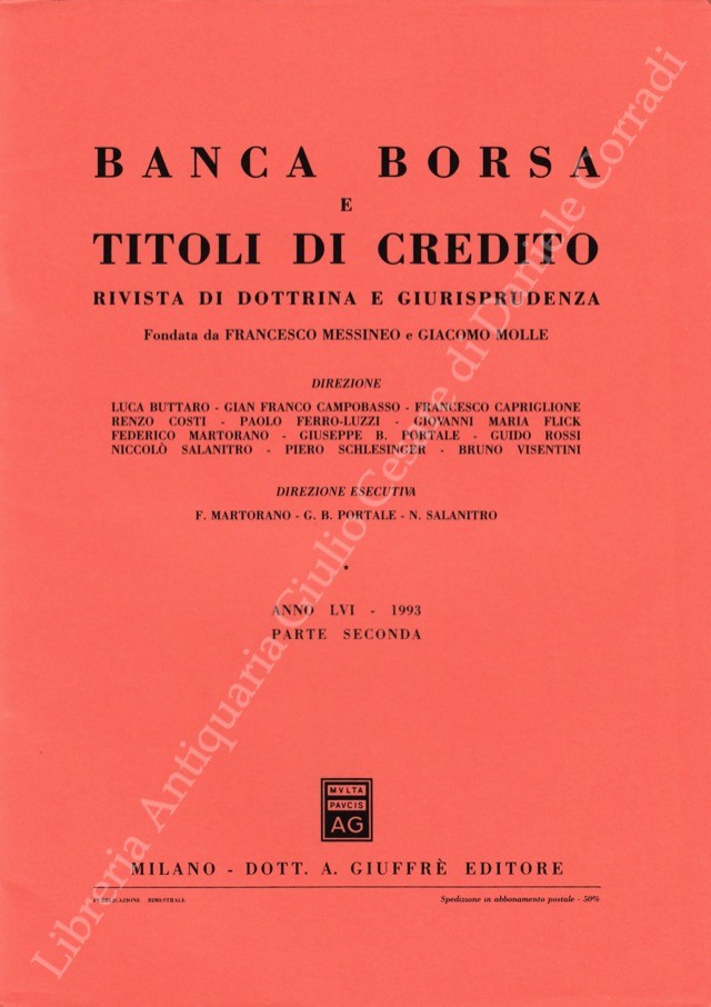 Banca borsa e titoli di credito. Rivista di Dottrina e Giurisprudenza. Fondata da Francesco Messineo e Giacomo Molle. Anno LVI - 1993