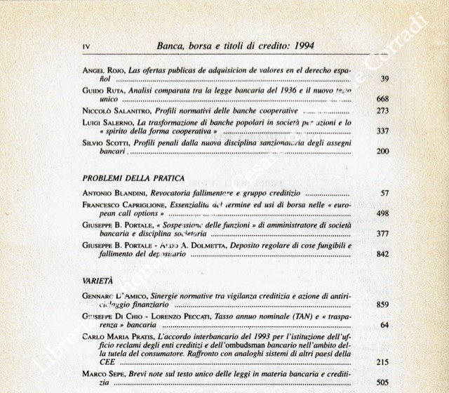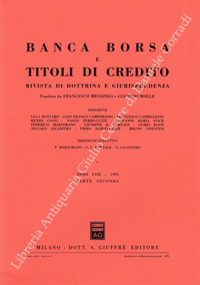 Banca borsa e titoli di credito. Rivista di Dottrina e Giurisprudenza. Fondata da Francesco Messineo e Giacomo Molle. Anno LVII - 1994