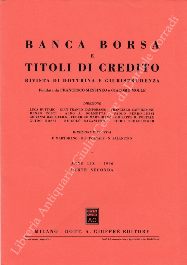 Banca borsa e titoli di credito. Rivista di Dottrina e Giurisprudenza. Fondata da Francesco Messineo e Giacomo Molle. Anno LIX - 1996