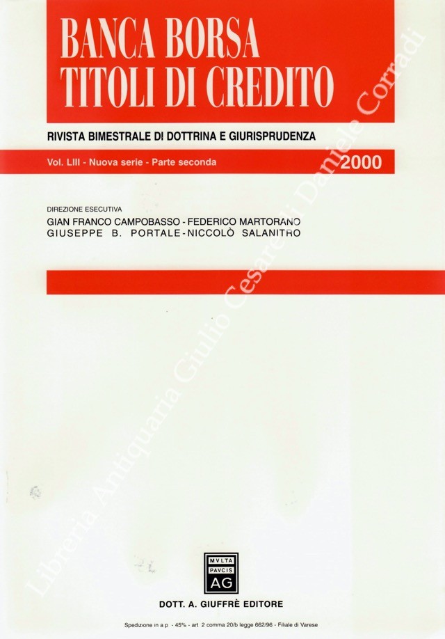 Banca borsa e titoli di credito. Rivista di Dottrina e Giurisprudenza. Fondata da Francesco Messineo e Giacomo Molle. Anno LIII - Nuova Serie - 2000