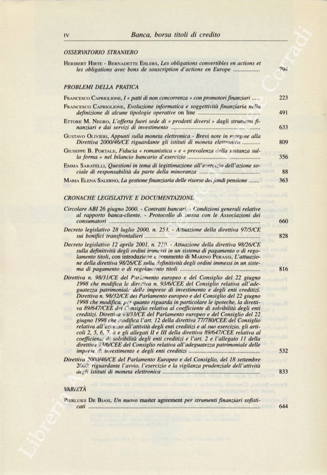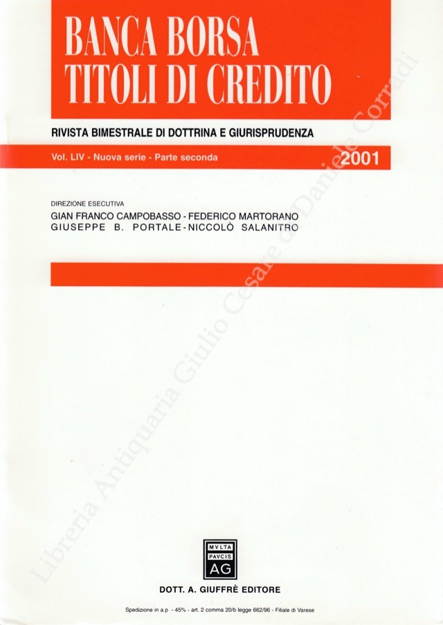 Banca borsa e titoli di credito. Rivista di Dottrina e Giurisprudenza. Fondata da Francesco Messineo e Giacomo Molle. Anno LIV - Nuova Serie - 2001