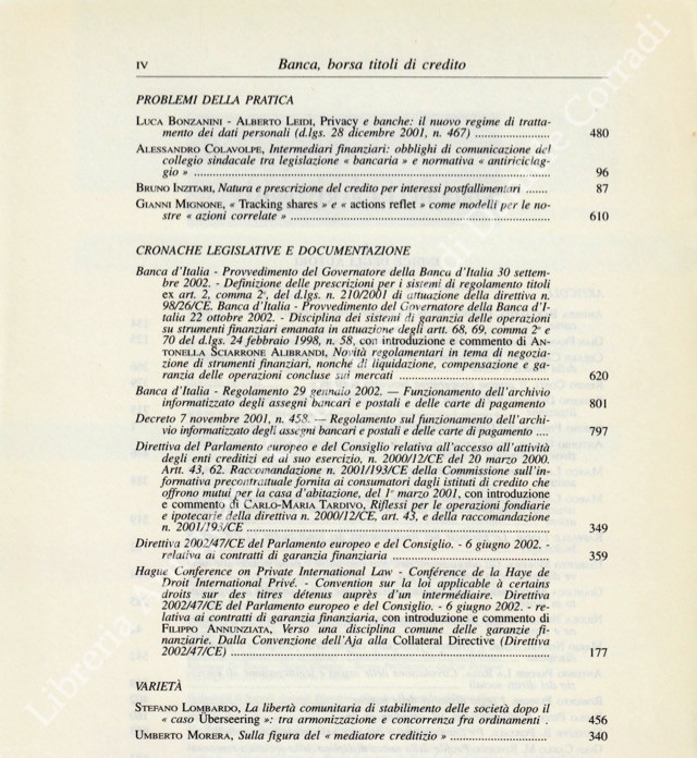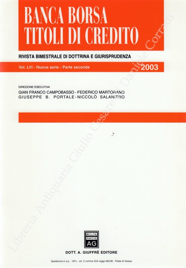 Banca borsa e titoli di credito. Rivista di Dottrina e Giurisprudenza. Fondata da Francesco Messineo e Giacomo Molle. Anno LVI - Nuova Serie - 2003