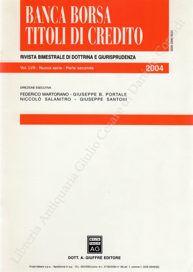 Banca borsa e titoli di credito. Rivista di Dottrina e Giurisprudenza. Fondata da Francesco Messineo e Giacomo Molle. Anno LVII - Nuova Serie - 2004