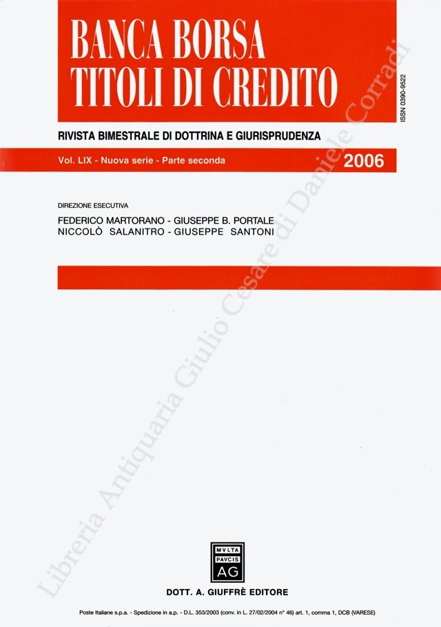 Banca borsa e titoli di credito. Rivista di Dottrina e Giurisprudenza. Fondata da Francesco Messineo e Giacomo Molle. Anno LIX - Nuova Serie - 2006