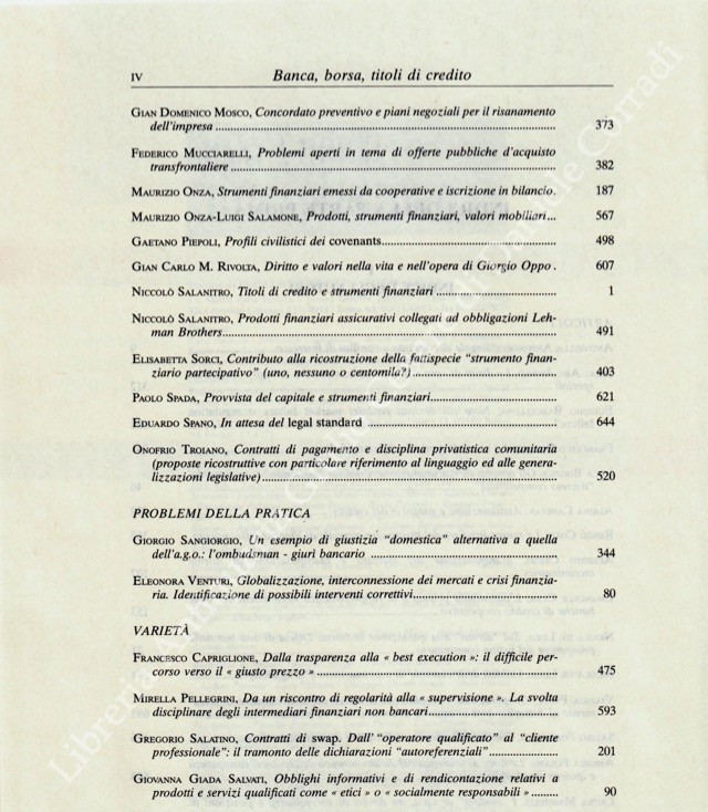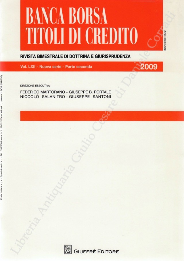 Banca borsa e titoli di credito. Rivista di Dottrina e Giurisprudenza. Fondata da Francesco Messineo e Giacomo Molle. Anno LXII - Nuova Serie - 2009