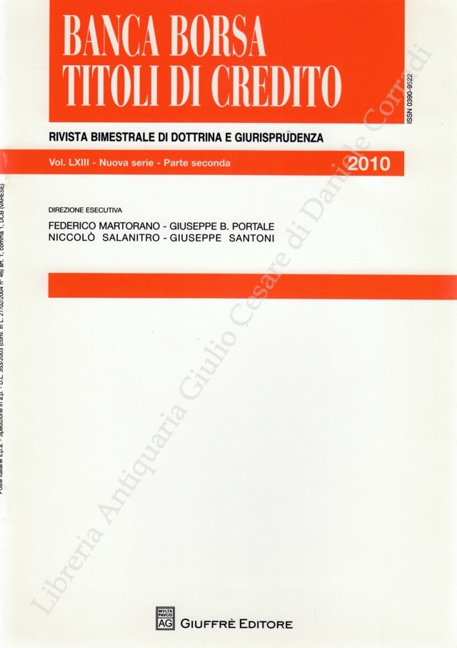 Banca borsa e titoli di credito. Rivista di Dottrina e Giurisprudenza. Fondata da Francesco Messineo e Giacomo Molle. Anno LXIII - Nuova Serie - 2010