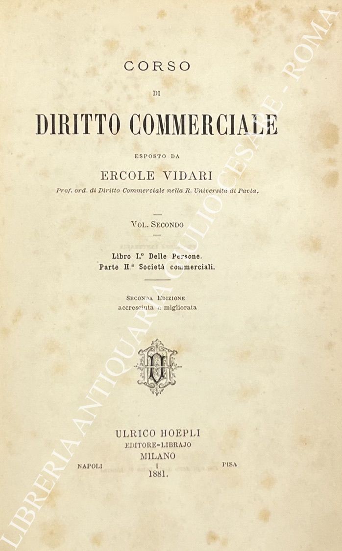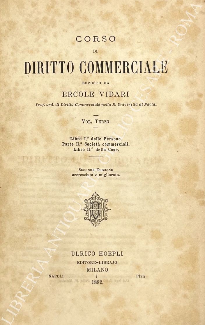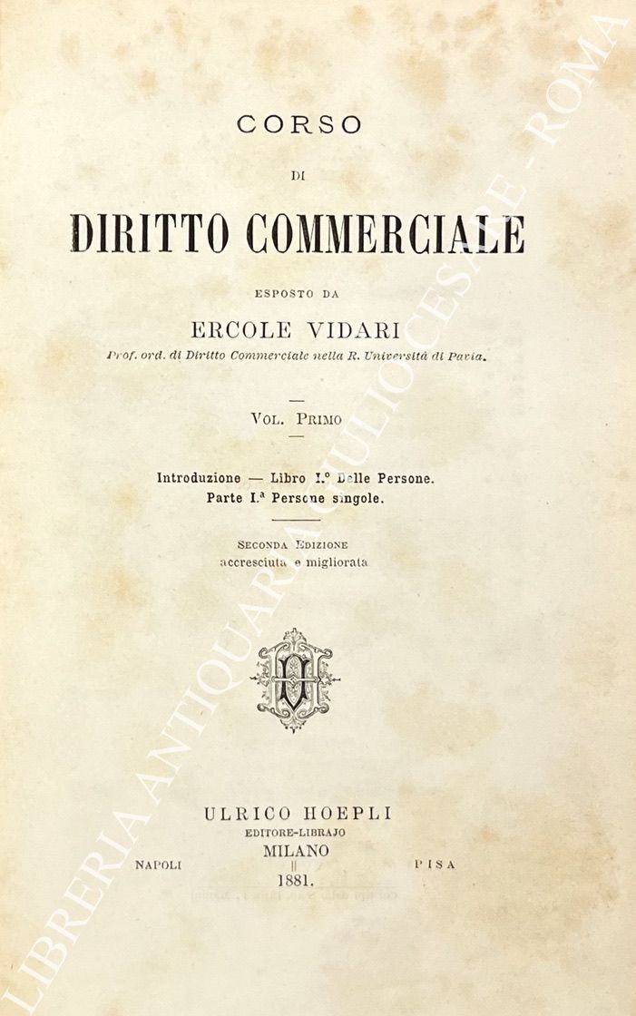 Corso di diritto commerciale. Vol. I - Introduzione; Libro Primo - Delle persone, Parte prima - Persone singole. Vol. II - Libro Primo - Delle persone, Parte seconda: Società commerciali. Vol. III - Libro Primo - Delle persone, Parte seconda: Società commerciali; Libro secondo: Delle cose