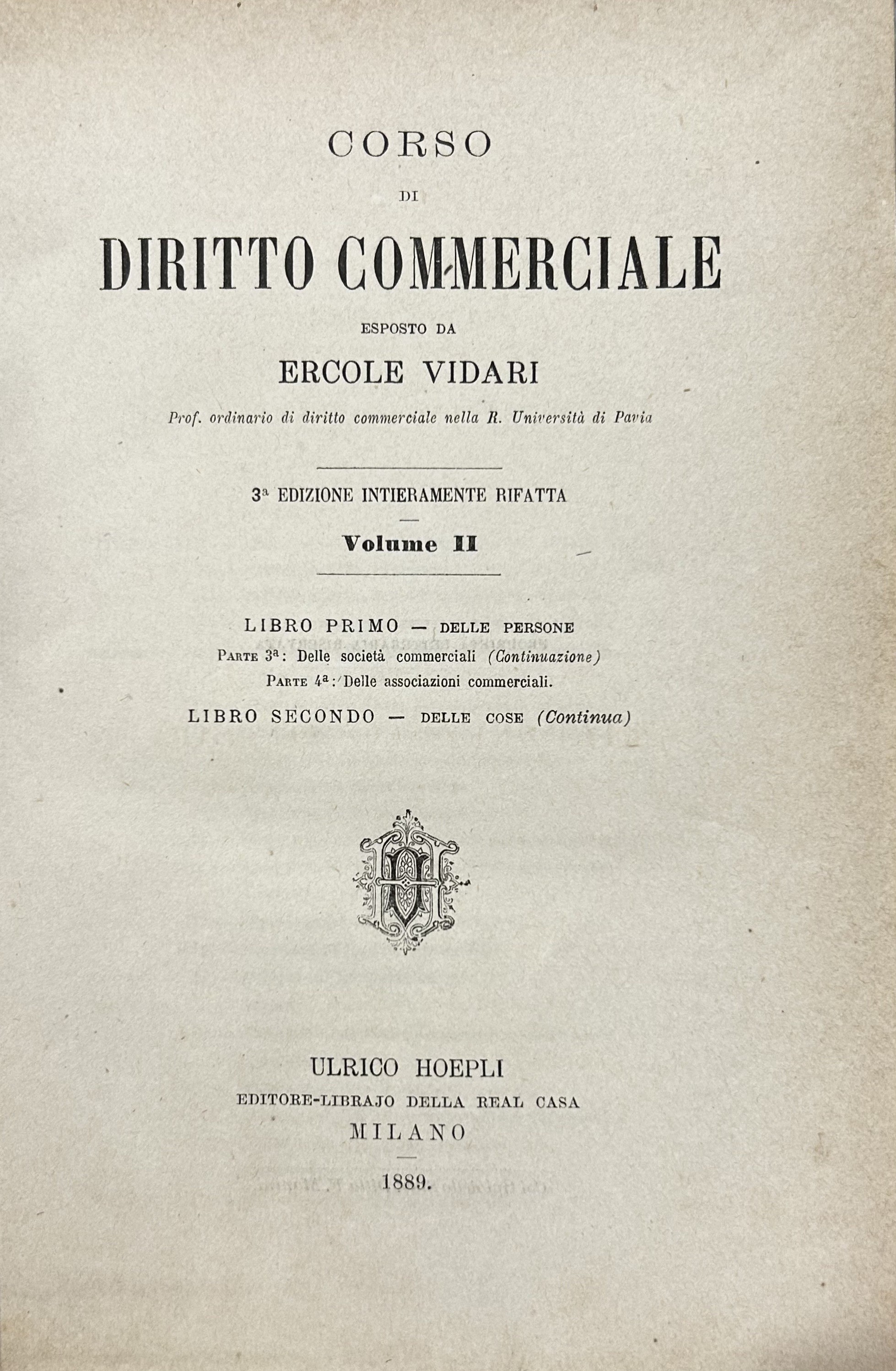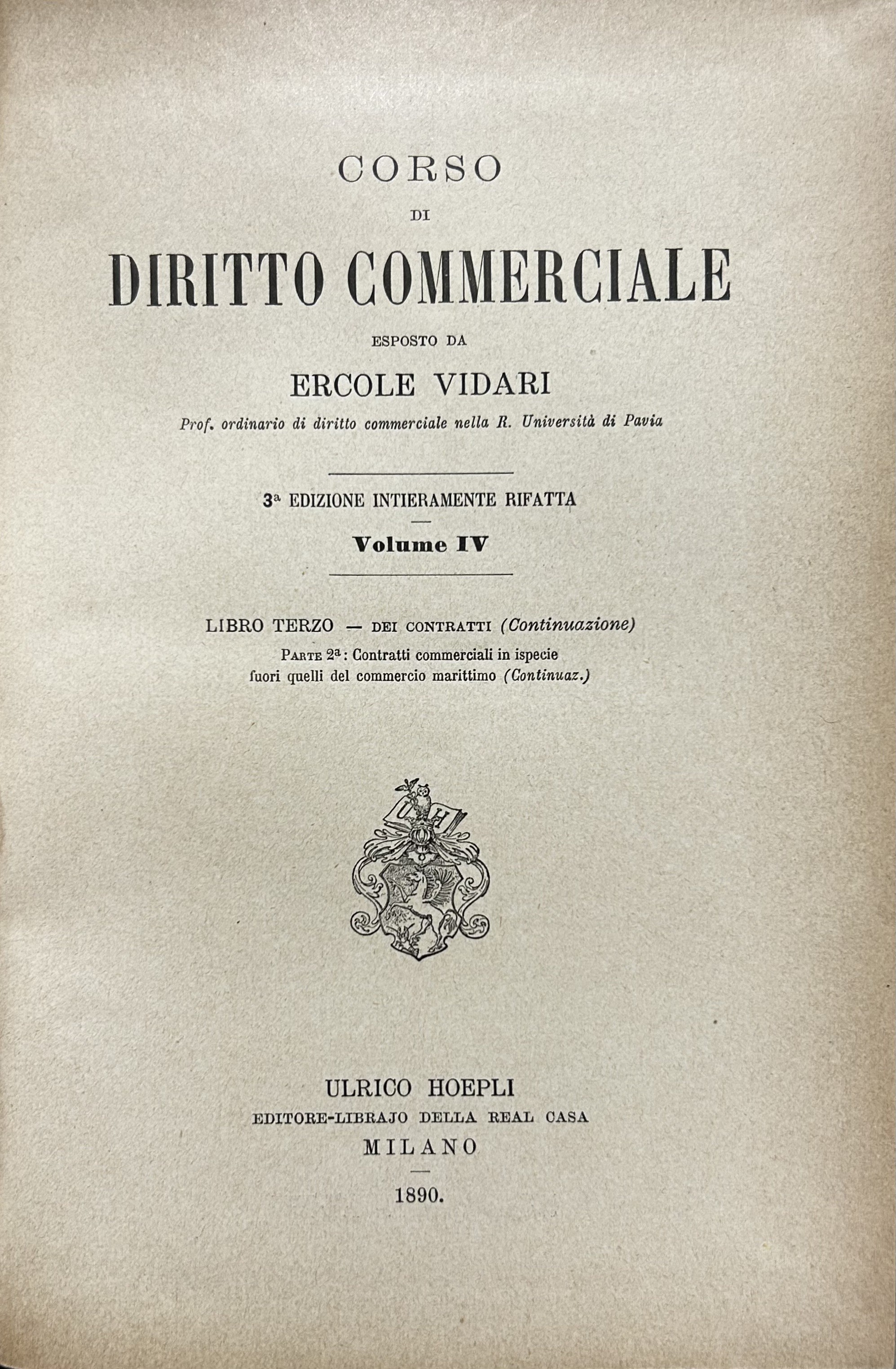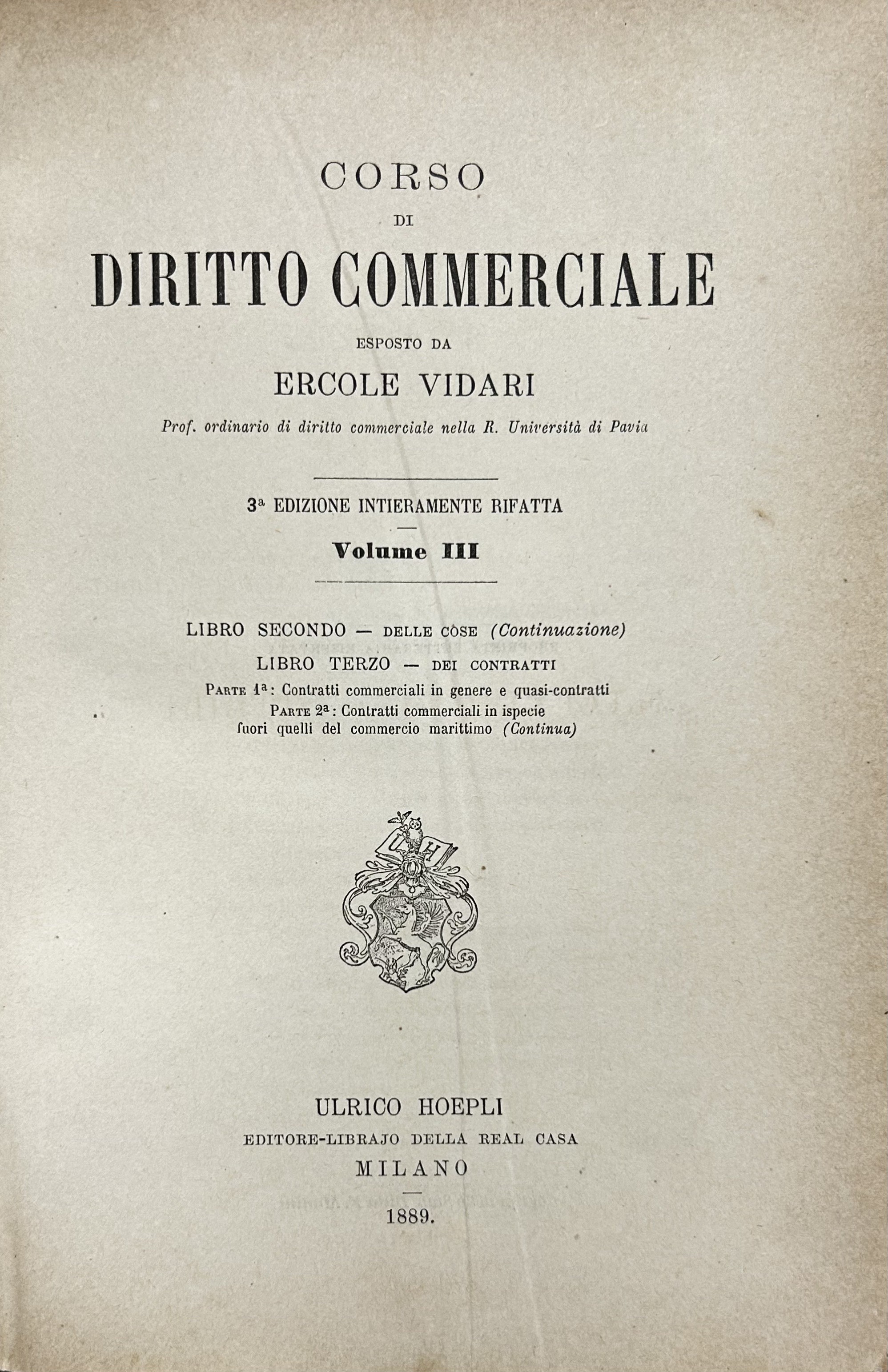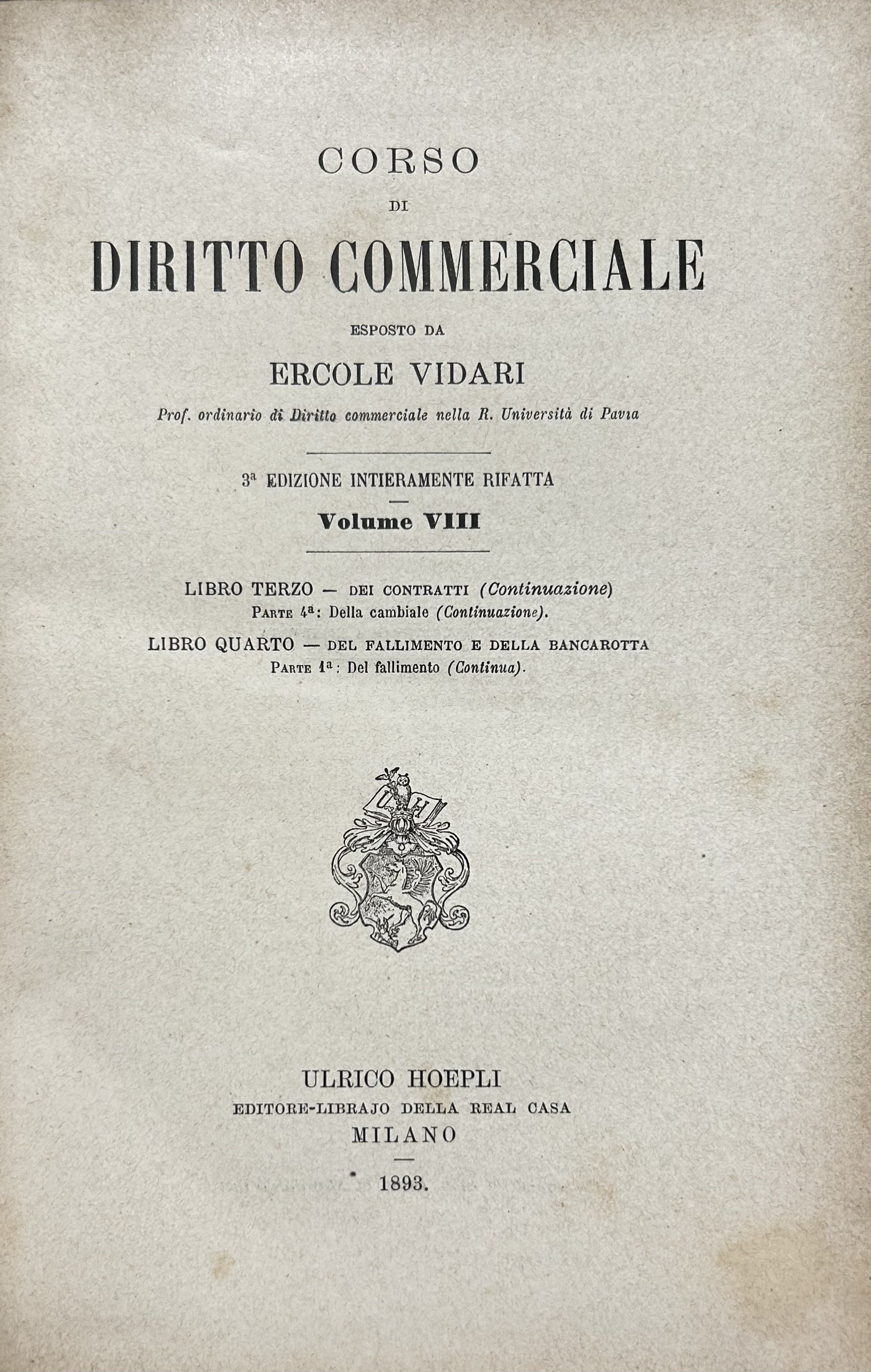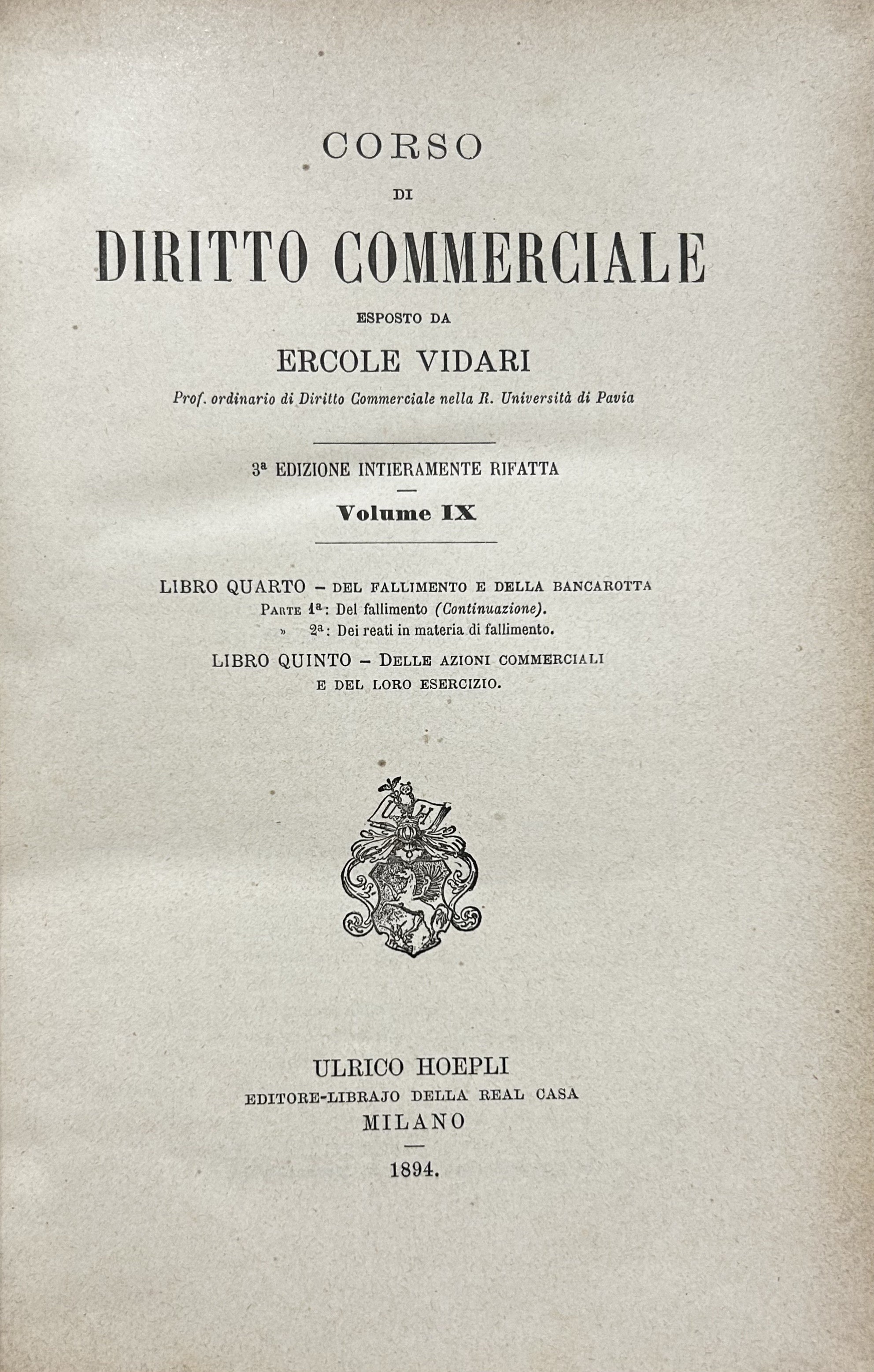 Corso di diritto commerciale. Vol. I - Introduzione del commercio e del diritto commerciale in generale: Libro Primo - Delle persone. Vol. II - Libro Primo - Delle persone; Libro Secondo - Delle cose. Vol. III - Libro Secondo - Delle cose; Libro Terzo - Dei contratti. Vol. IV - Libro Terzo - Dei contratti. Vol. V - Libro Terzo - Dei contratti. Vol. VI - Libro Terzo - Dei contratti. Vol. VII - Libro Terzo - Dei contratti. Vol. VIII - Libro Terzo - Dei contratti; Libro Quarto - Del fallimento e della bancarotta. Vol. IX - Del fallimento e della bancarotta; Libro Quinto - Delle azioni commerciali