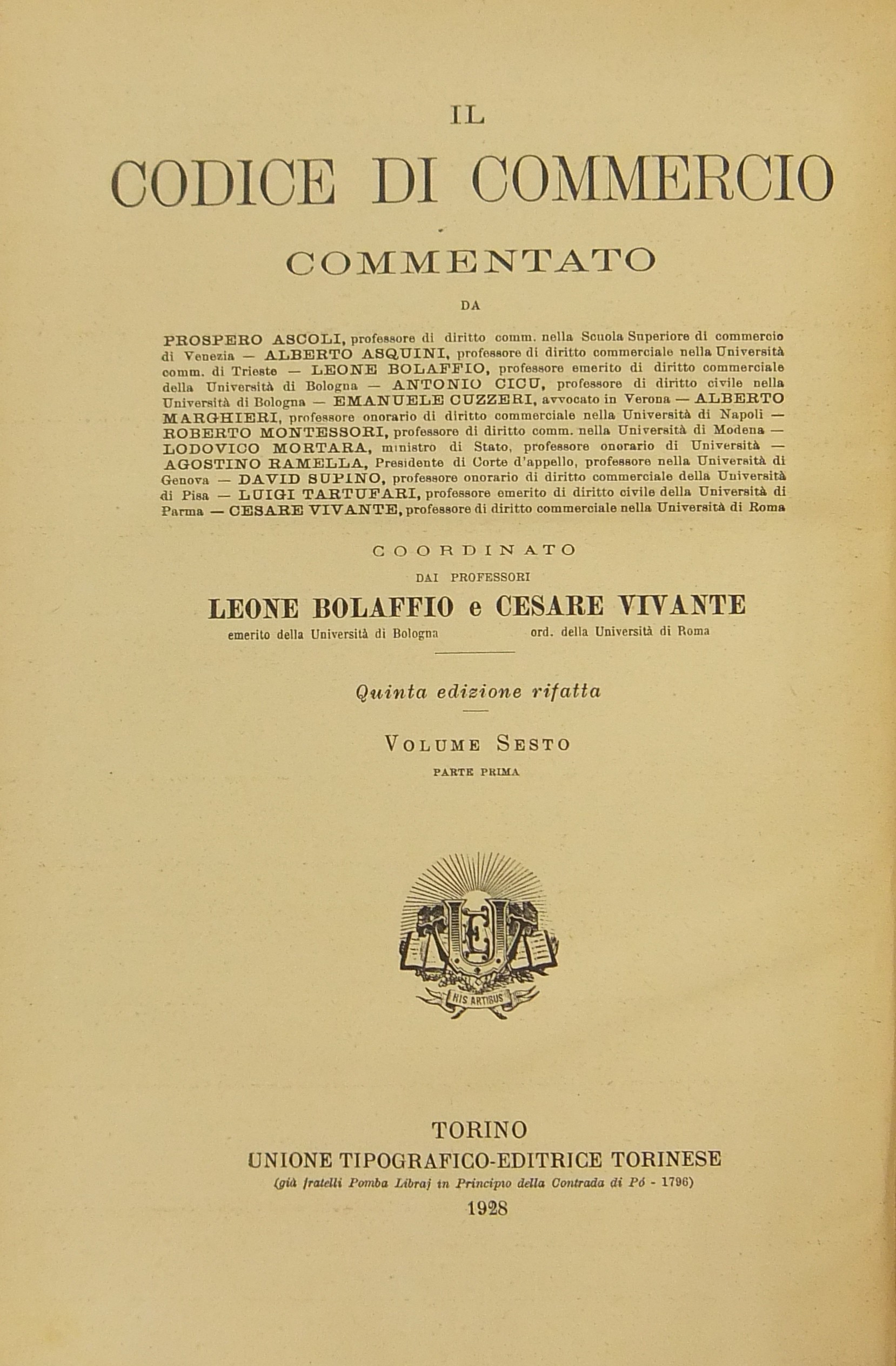 Collana: Il Codice di Commercio Commentato da Ascarelli Ascoli Asquini Bolaffio Cicu Cuzzeri Messineo Montessori Mortara Supino Tartufari Vivante