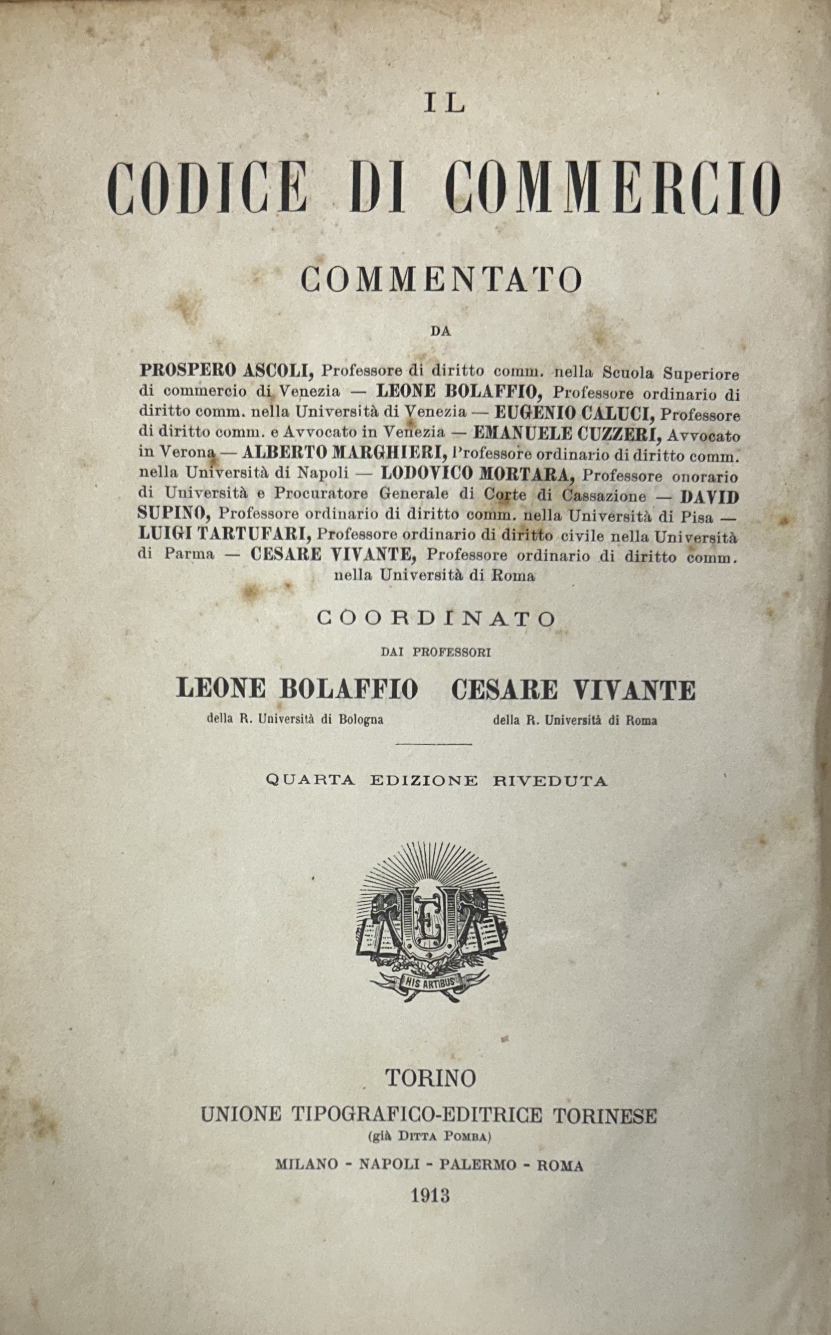 Collana: Il Codice di Commercio Commentato da Ascarelli Ascoli Asquini Bolaffio Cicu Cuzzeri Messineo Montessori Mortara Supino Tartufari Vivante