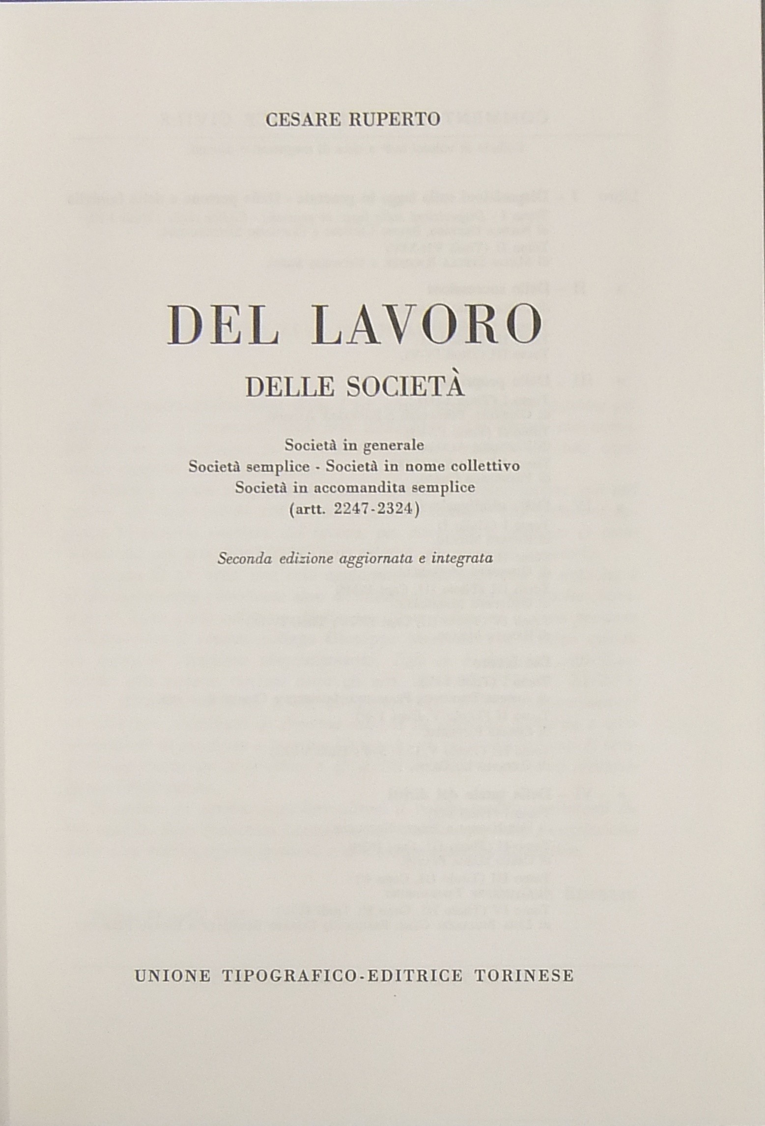 Del lavoro; Delle società . Società in generale, società semplice, società in nome collettivo, società in accomandita semplice. (Artt. 2247-2324)