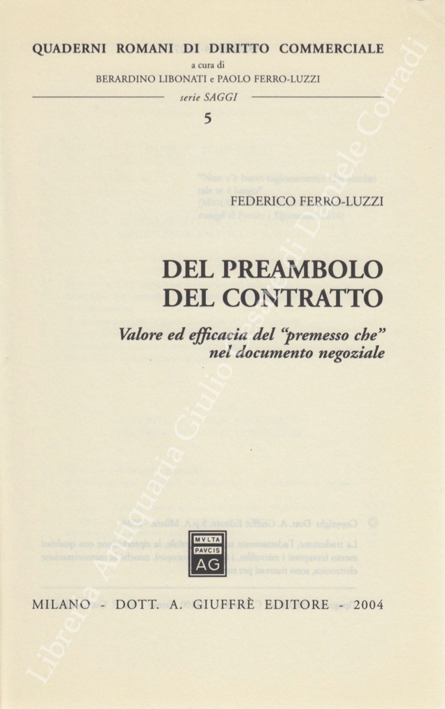 Direttore Collana: Berardino Libonati e Paolo Ferro Luzzi