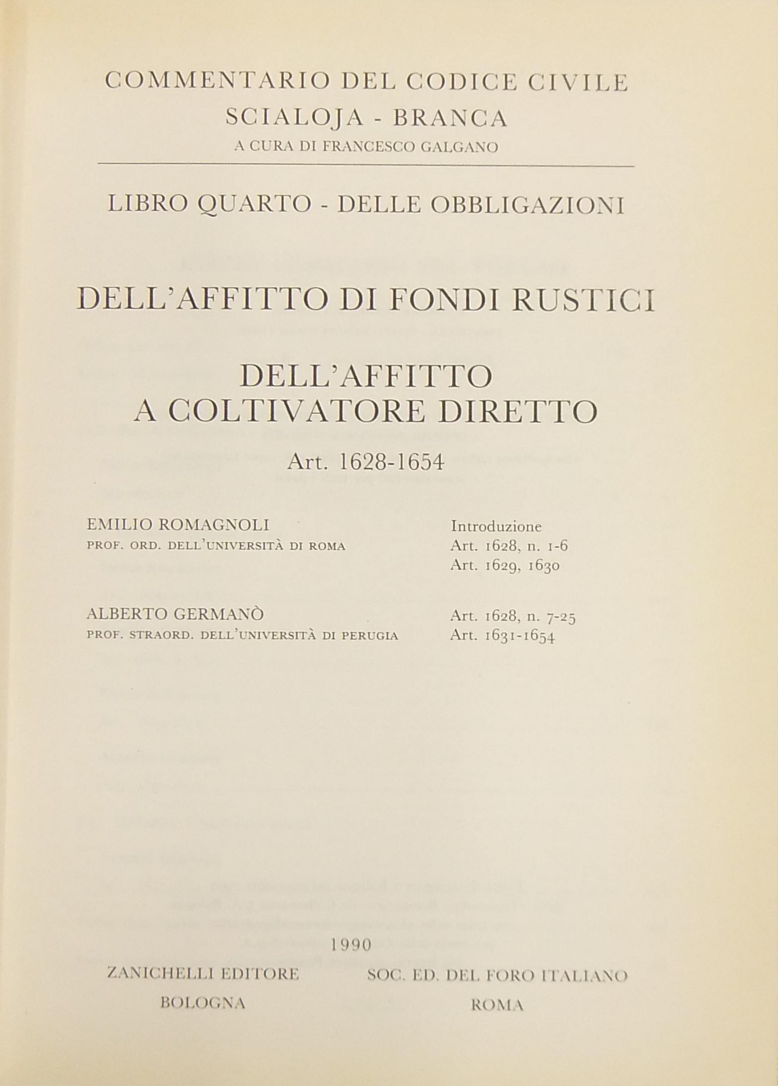 Direttore Collana: F. Galgano (A. Scialoja e G. Branca)