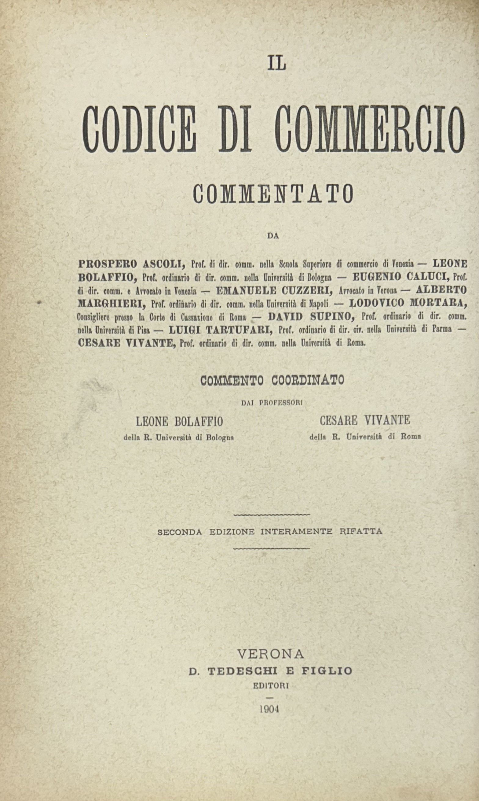 Collana: Il Codice di Commercio Commentato da Ascarelli Ascoli Asquini Bolaffio Cicu Cuzzeri Messineo Montessori Mortara Supino Tartufari Vivante