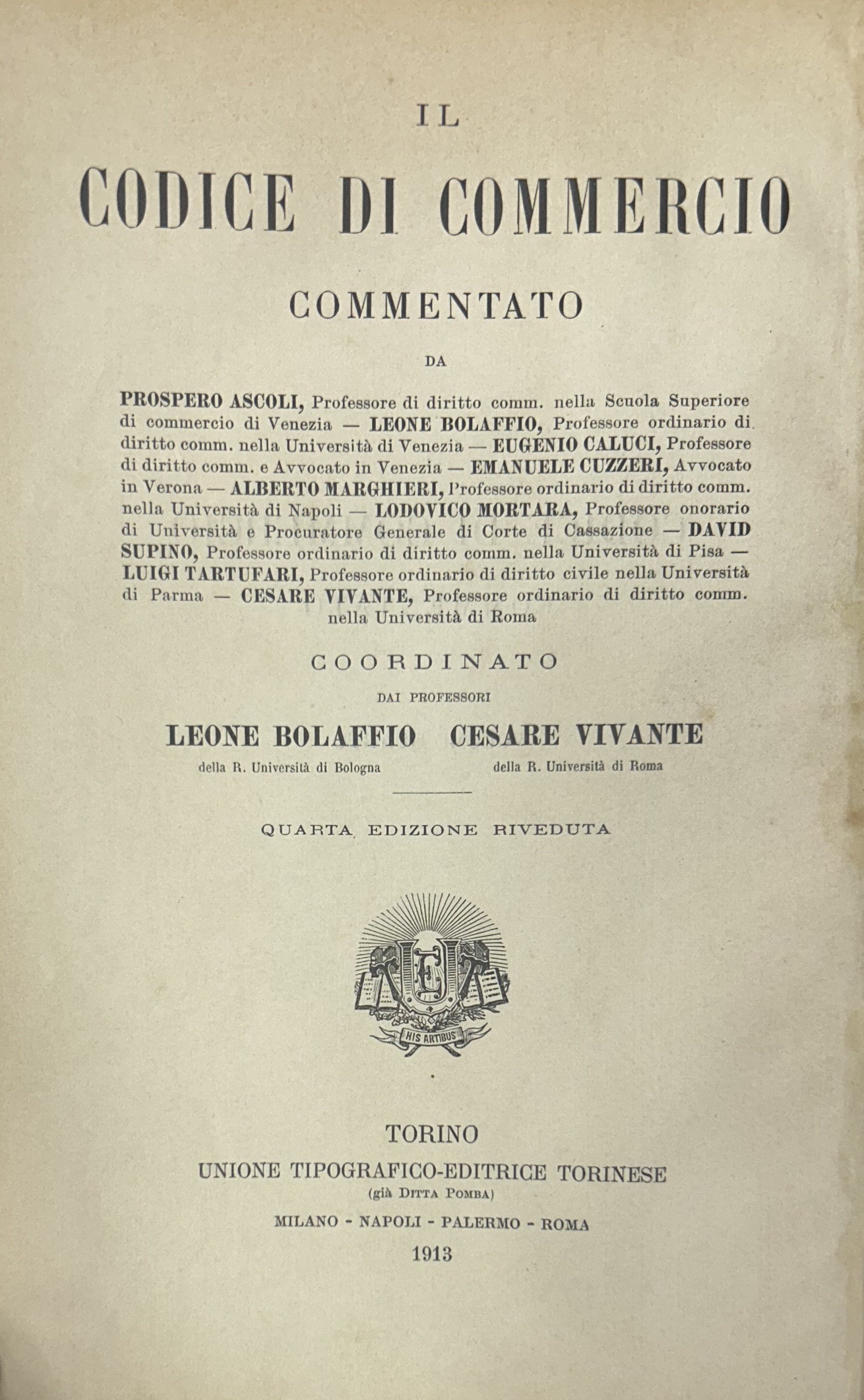 Collana: Il Codice di Commercio Commentato da Ascarelli Ascoli Asquini Bolaffio Cicu Cuzzeri Messineo Montessori Mortara Supino Tartufari Vivante