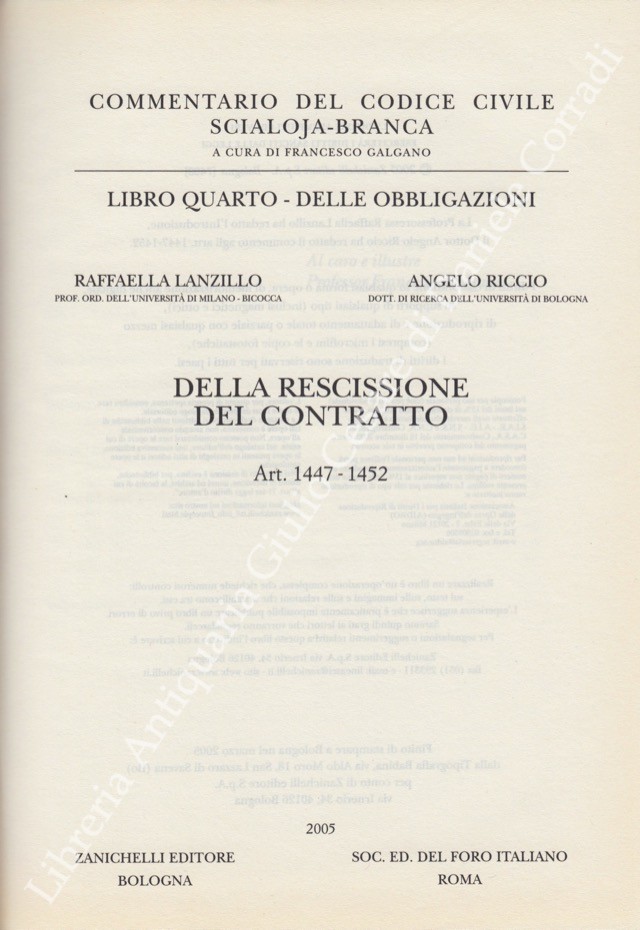 Direttore Collana: F. Galgano (A. Scialoja e G. Branca)