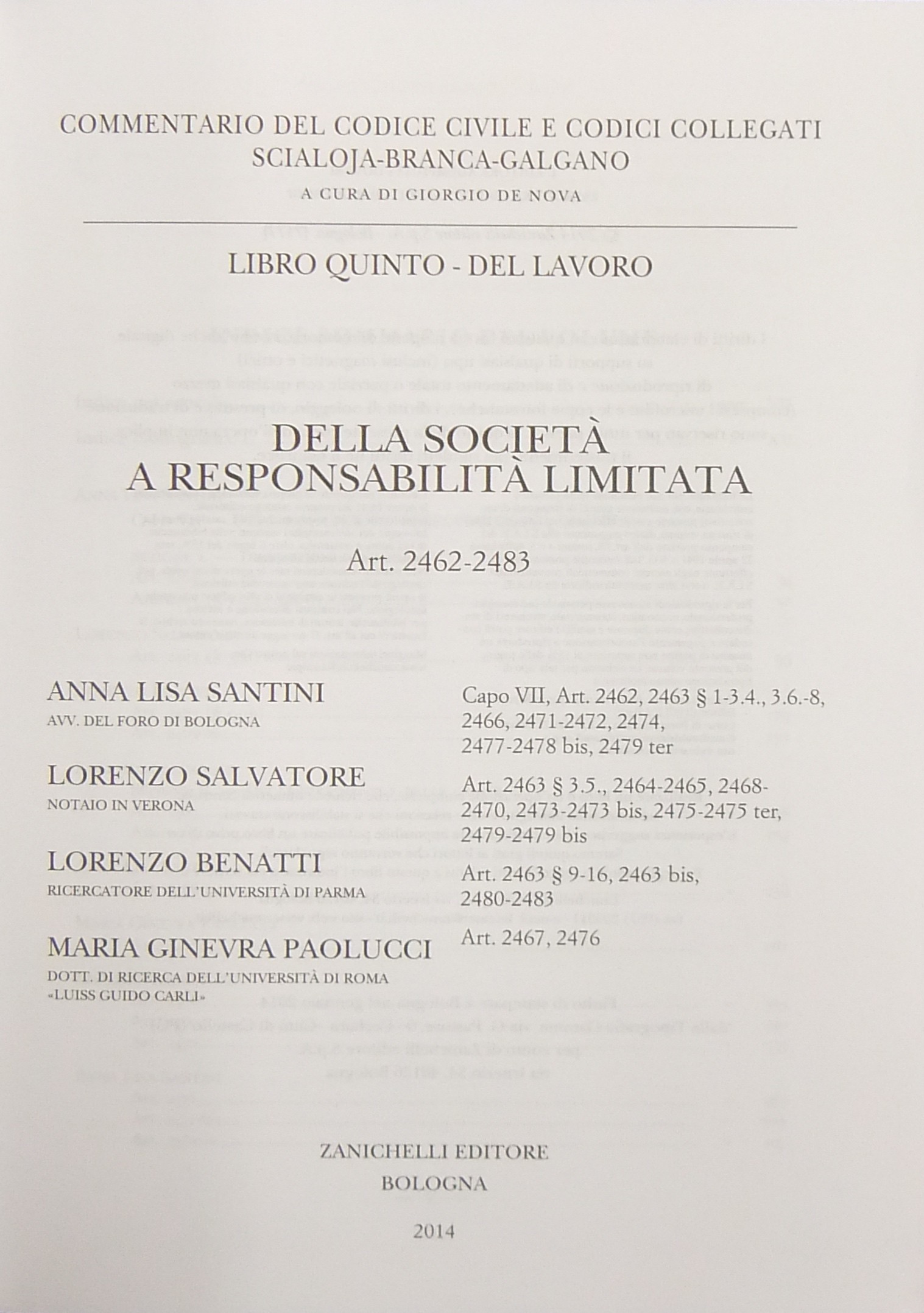 Direttore Collana: G. De Nova (A. Scialoja, G. Branca e F. Galgano)