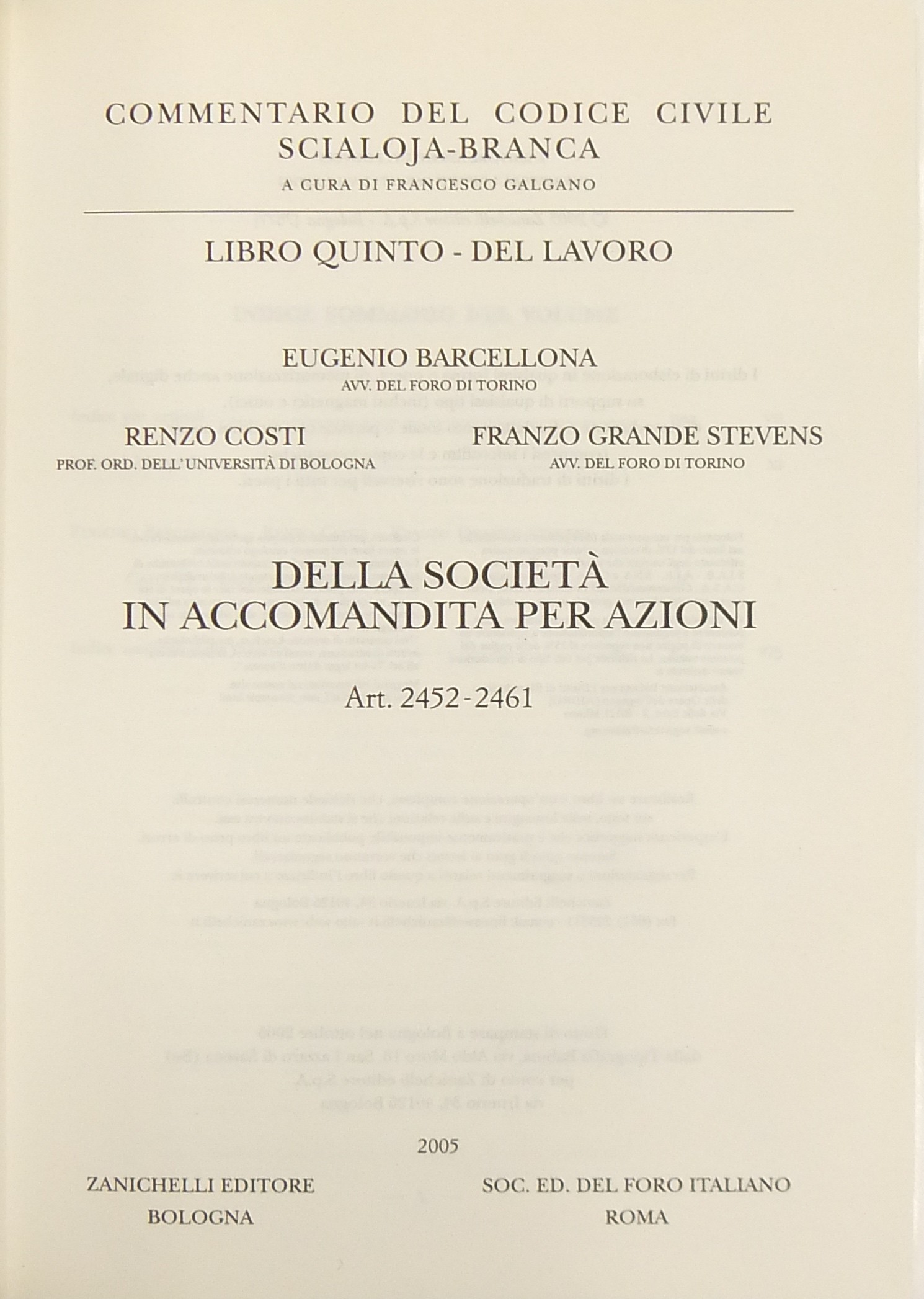 Direttore Collana: F. Galgano (A. Scialoja e G. Branca)