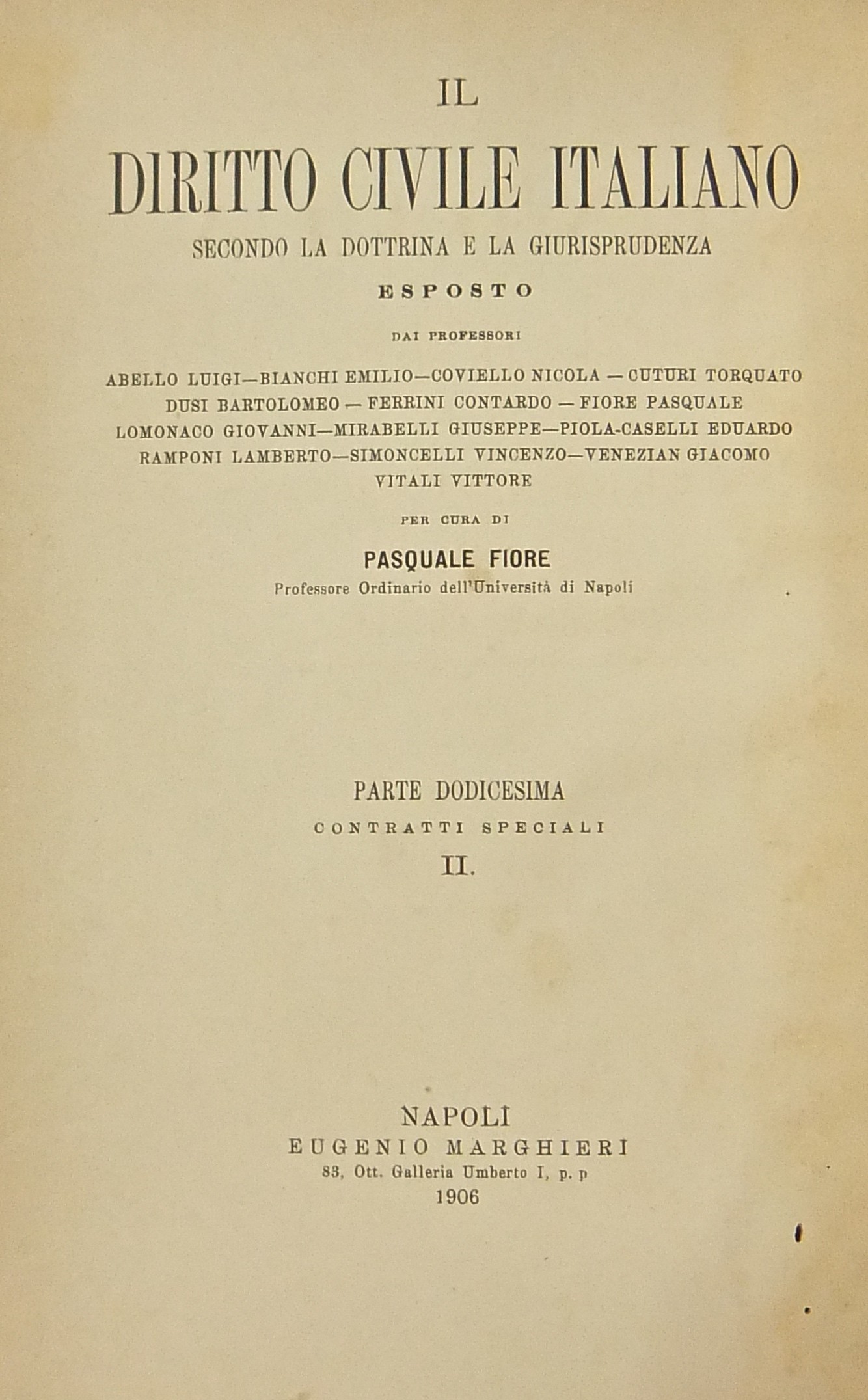 Collana: Il Diritto Civile Italiano secondo la dottrina e la giurisprudenza esposto da Abello Bianchi Brugi Coviello Cuturi Dusi Ferrara Ferrini Fiore Lomonaco Mirabelli Piola-Caselli Ramponi Simoncelli Venezian Vitali