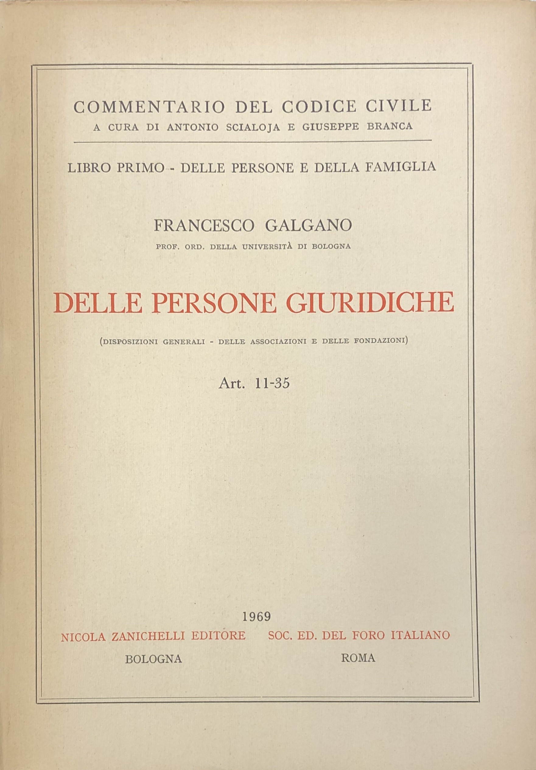 Delle persone giuridiche. (Disposizioni generali. Delle associazioni e delle fondazioni). Art. 11-35