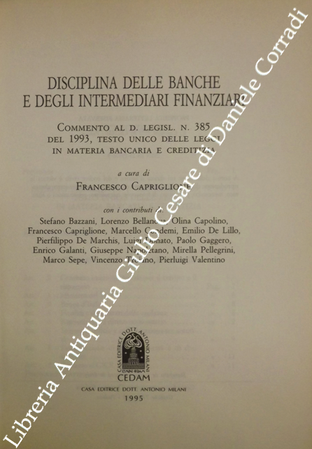 Disciplina delle banche e degli intermediari finanziari. Commento al d. legisl. n. 385 del 1993, testo unico delle leggi in materia bancaria e creditizia