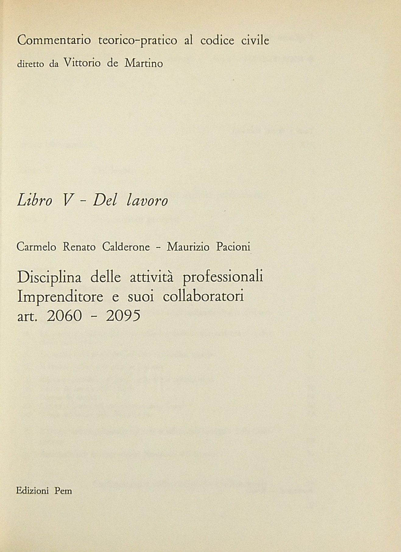 Disciplina delle attività professionali. Imprenditore e suoi collaboratori. Art. 2060-2095