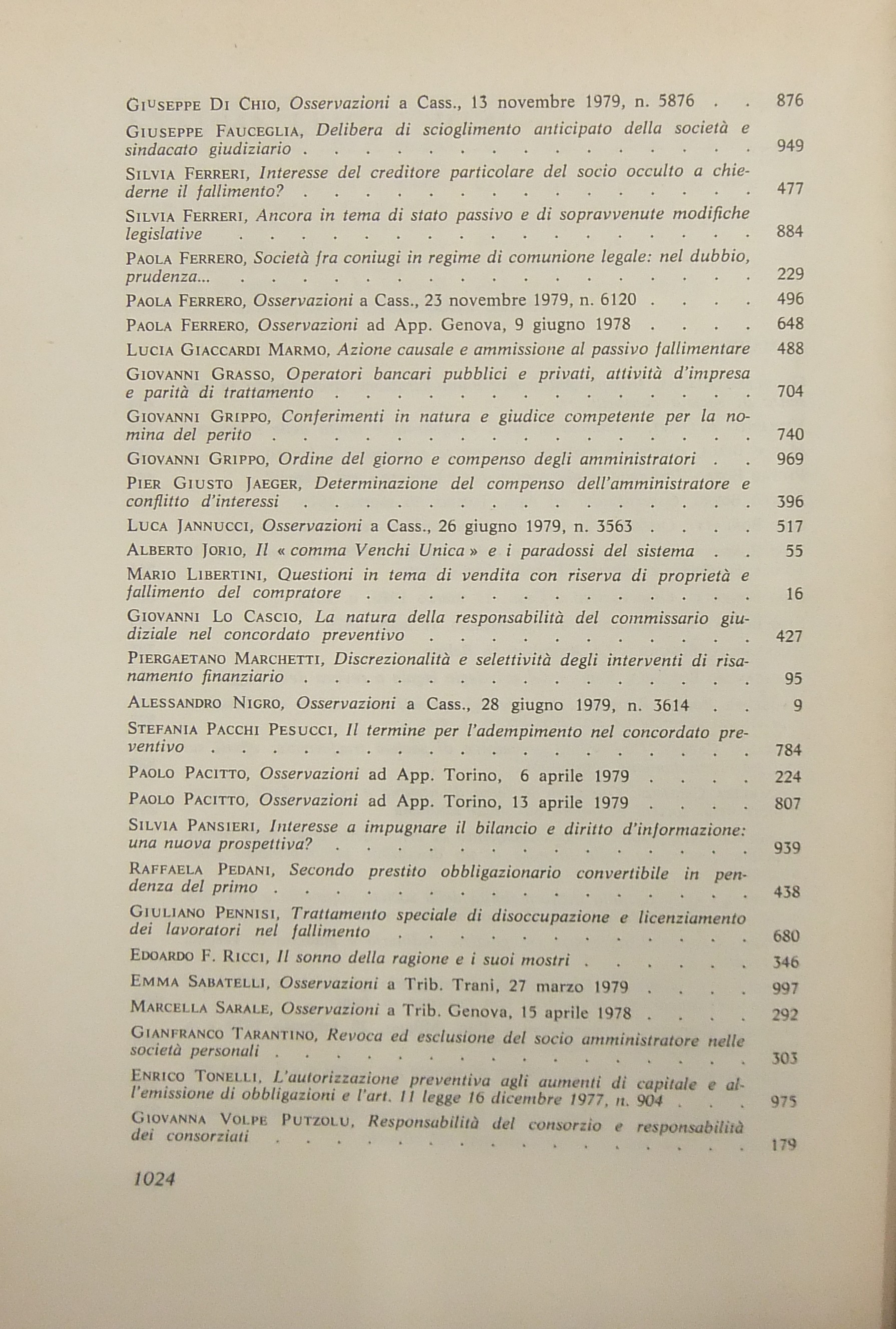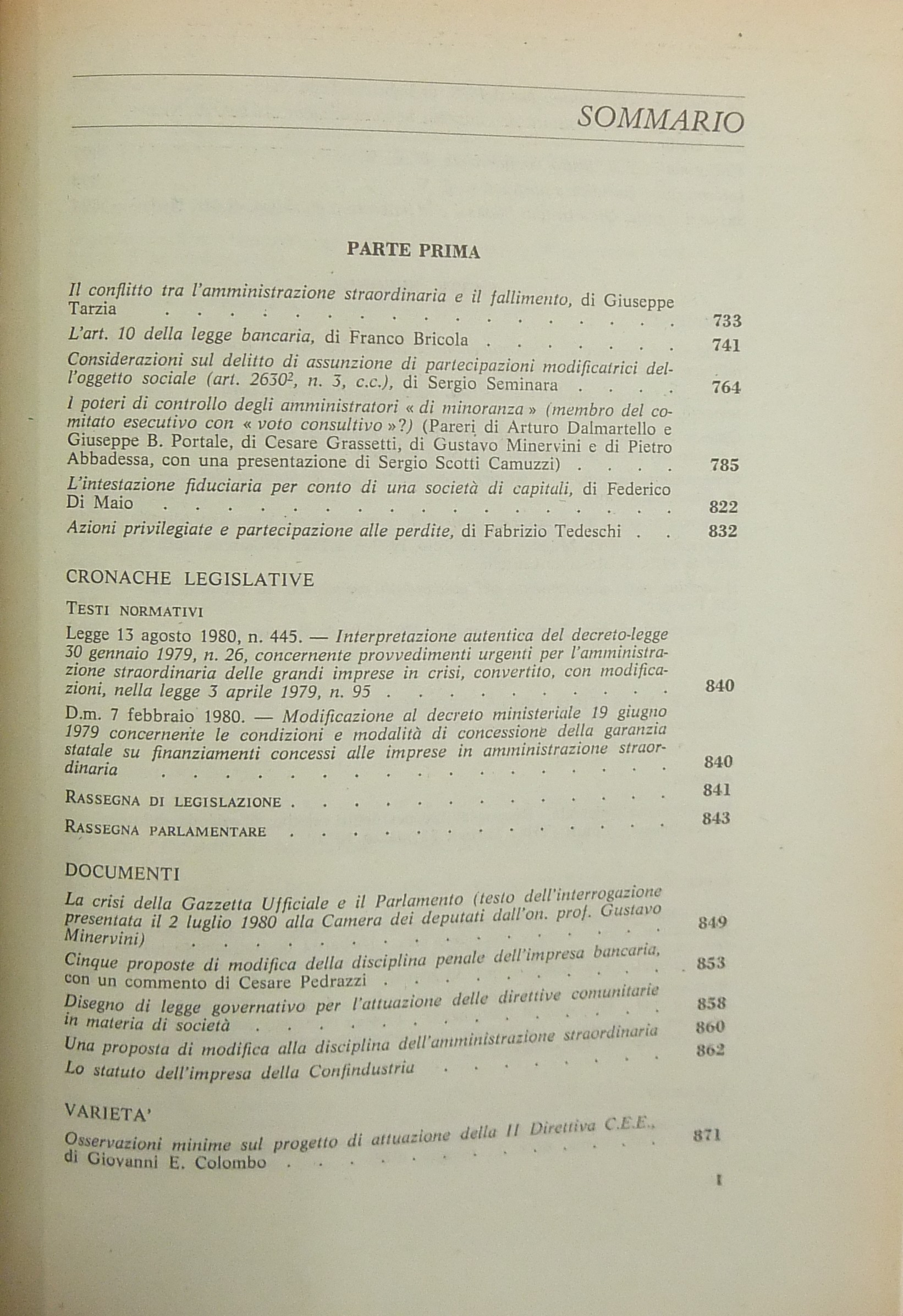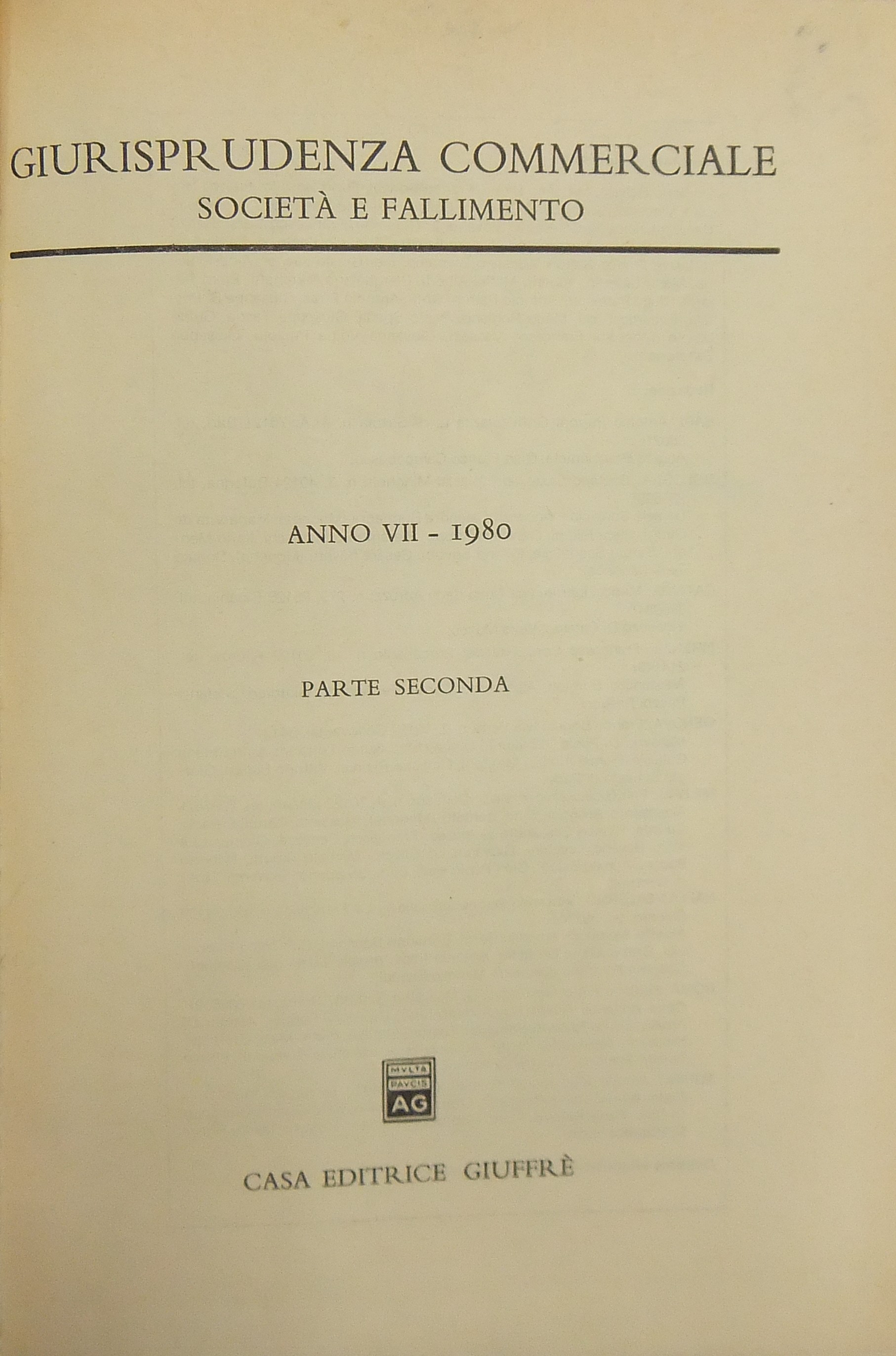 Giurisprudenza Commerciale. Società e fallimento. Anno VII - 1980